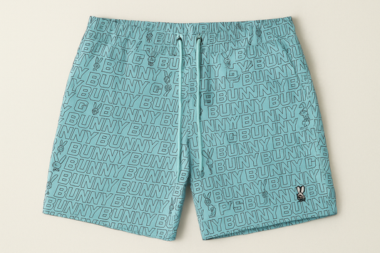 Short de baño Psycho Bunny 🐰 color celeste y logo en letras en negro Talla 3XL