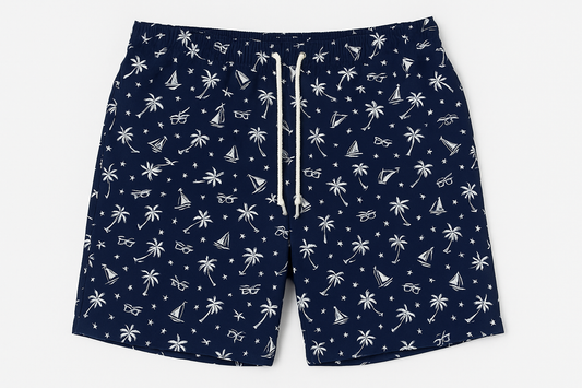 Short de baño Polo Ralph Lauren 🏇🏼color azul navy con diseño de isla en blanco talla XL