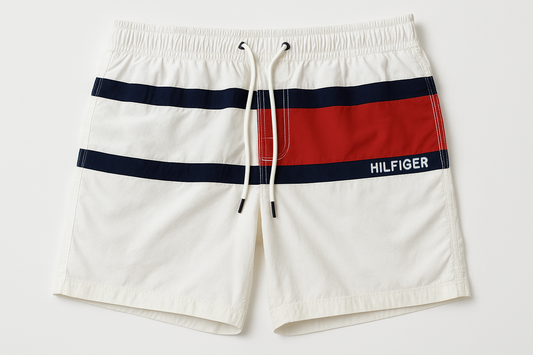 Short de baño Tommy Hilfiger 🇺🇸 color blanco y logo en color rojo, azul y blanco talla L
