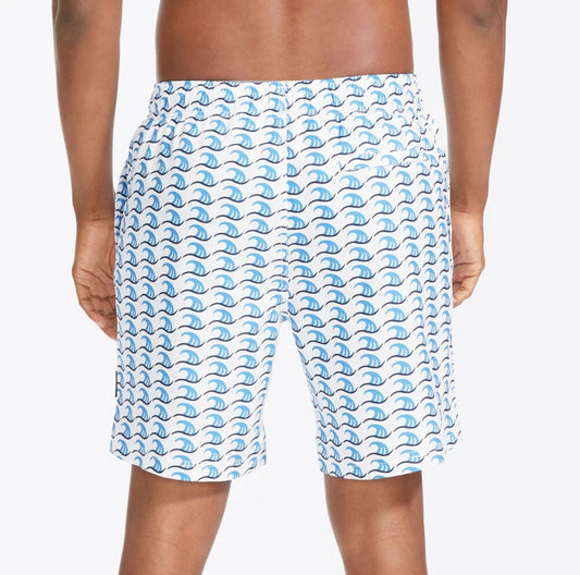 Short de baño Nautica ⚓️ color blanco con diseño de olas y logo en color rojo talla L