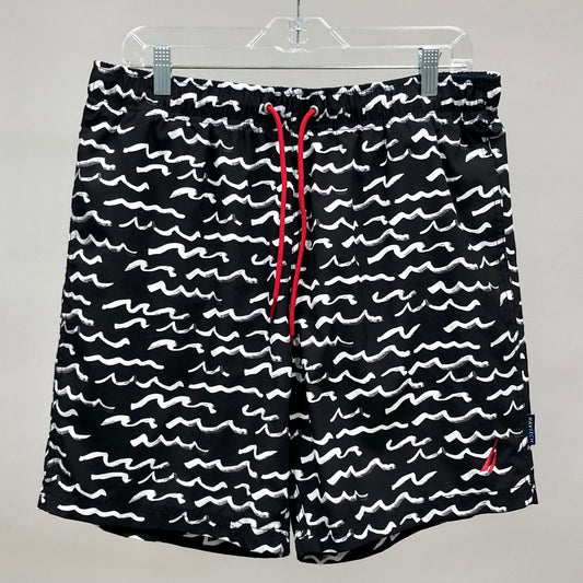 Short de baño Nautica ⚓️ color negro con diseño de olas y logo en color rojo talla L