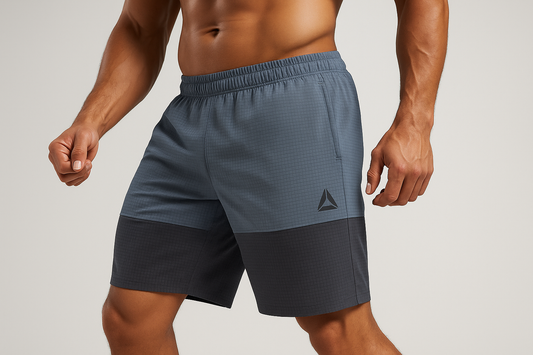 Short Deportivo Reebok 🏋🏼♂️ Tela performance con franjas en color gris claro y oscuro talla XL