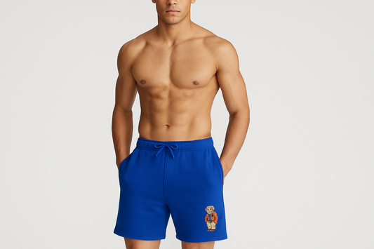 Short Lounge Polo Ralph Lauren 🏇🏼 color azul intenso con diseño de Polo Bear Universitario Talla S