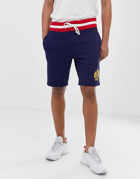 Short Lounge Polo Ralph Lauren 🏇🏼 color Azul Navy con diseño de franjas en rojo y blanco Talla S