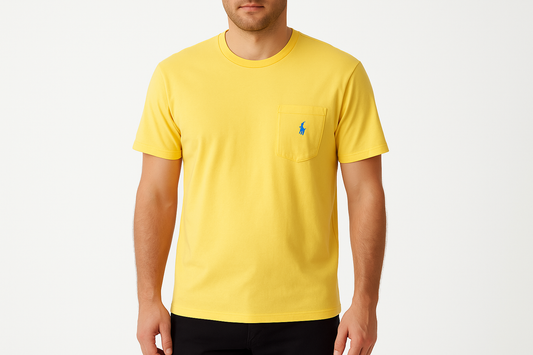 Camiseta cuello redondo Polo Ralph Lauren 🏇🏼 color amarillo y diseño con bolsillo Talla L Entalle Clásico