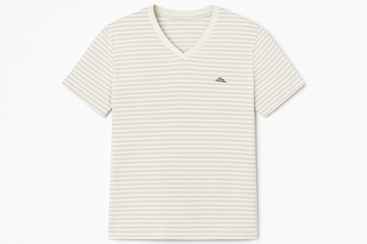Camiseta cuello V Lacoste 🐊 con patrón de rayas en color kaki y crema Talla Medium Entalle Regular