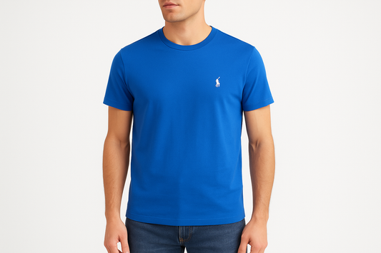Camiseta cuello Redondo Polo Ralph Lauren 🏇🏼 color azul manga corta Talla Medium Entalle Regular