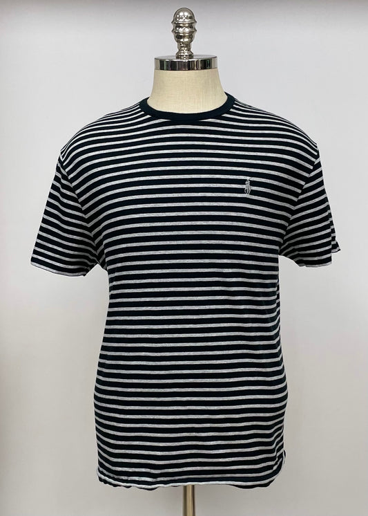 Camiseta cuello redondo Polo Ralph Lauren 🏇🏼 color negro y rayas en color gris Talla L Entalle Clásico