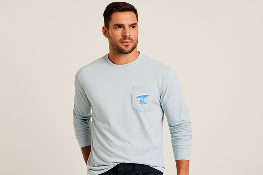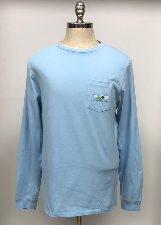 Camiseta cuello redondo Vineyard Vines 🐳 color celeste claro con Diseño de Paraguas en bolsillo Talla Medium