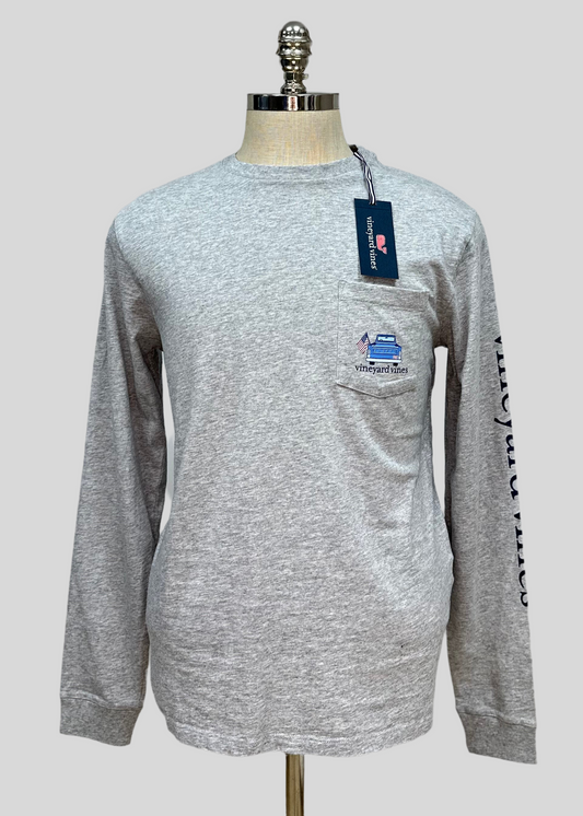 Camiseta de bolsillo Vineyard Vines 🐳 color gris con Diseño de Camioneta Talla Small