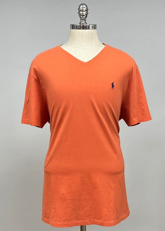 Camiseta cuello V Polo Ralph Lauren 🏇🏼 color naranja y logo en azul navy Talla XL