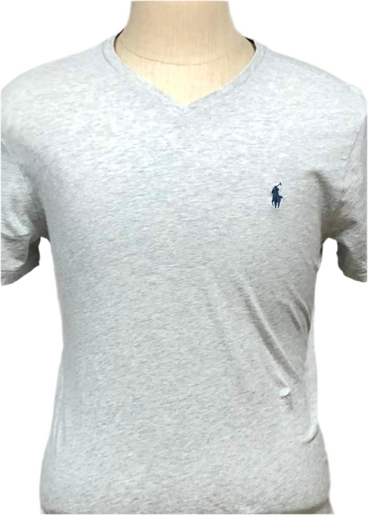 Camiseta cuello V Polo Ralph Lauren 🏇🏼 color gris claro manga corta Talla Medium Entalle Regular