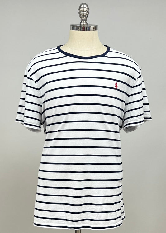 Camiseta cuello redondo Polo Ralph Lauren 🏇🏼 color blanco con patrón de rayas en color azul navy Talla XXL