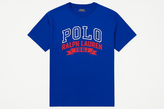 Camiseta cuello redondo Polo Ralph Lauren 🏇🏼 color azul y logo estampado en blanco y rojo Talla XL