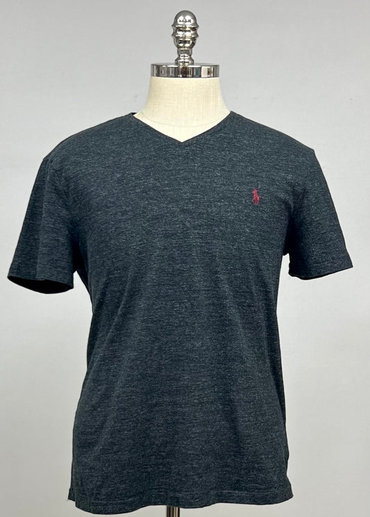 Camiseta cuello V Polo Ralph Lauren 🏇🏼 color gris oscuro manga corta Talla Large Entalle Custom Slim Fit