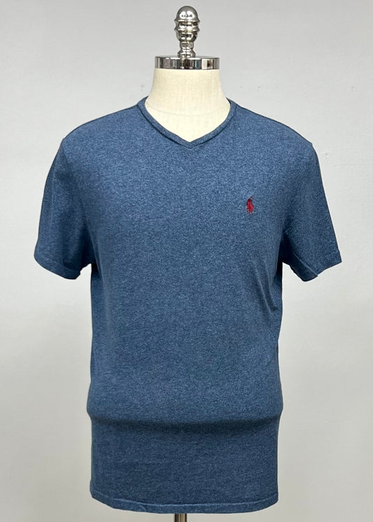 Camiseta cuello V Polo Ralph Lauren 🏇🏼 color azul grisáceo manga corta Talla Large Entalle Regular