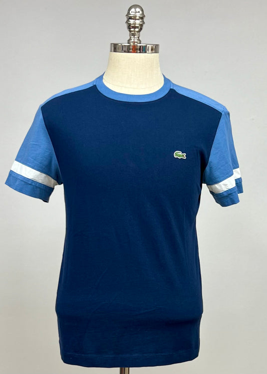 Camiseta cuello redondo Lacoste 🐊 en color azul y celeste Talla Medium Entalle Regular