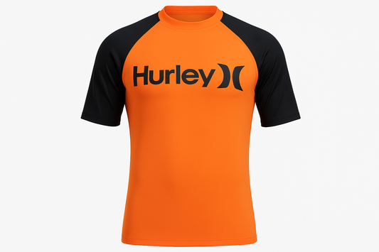 Camiseta de baño Hurley 🏄🏽♂️ color negro y naranja intenso y logo en negro Talla S
