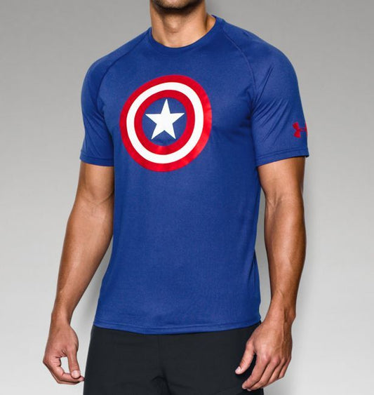 Camiseta de compresión Under Armour 🏋🏽 color azul con diseño de capitán america Talla M