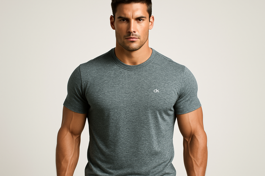 Camiseta de baño cuello Redondo Calvin Klein 🇺🇸 color gris manga corta Talla Medium Entalle Regular
