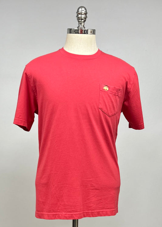 Camiseta cuello redondo Brooks Brothers 🐑 color rojo diseño con bolsillo y logo dorado Talla Large