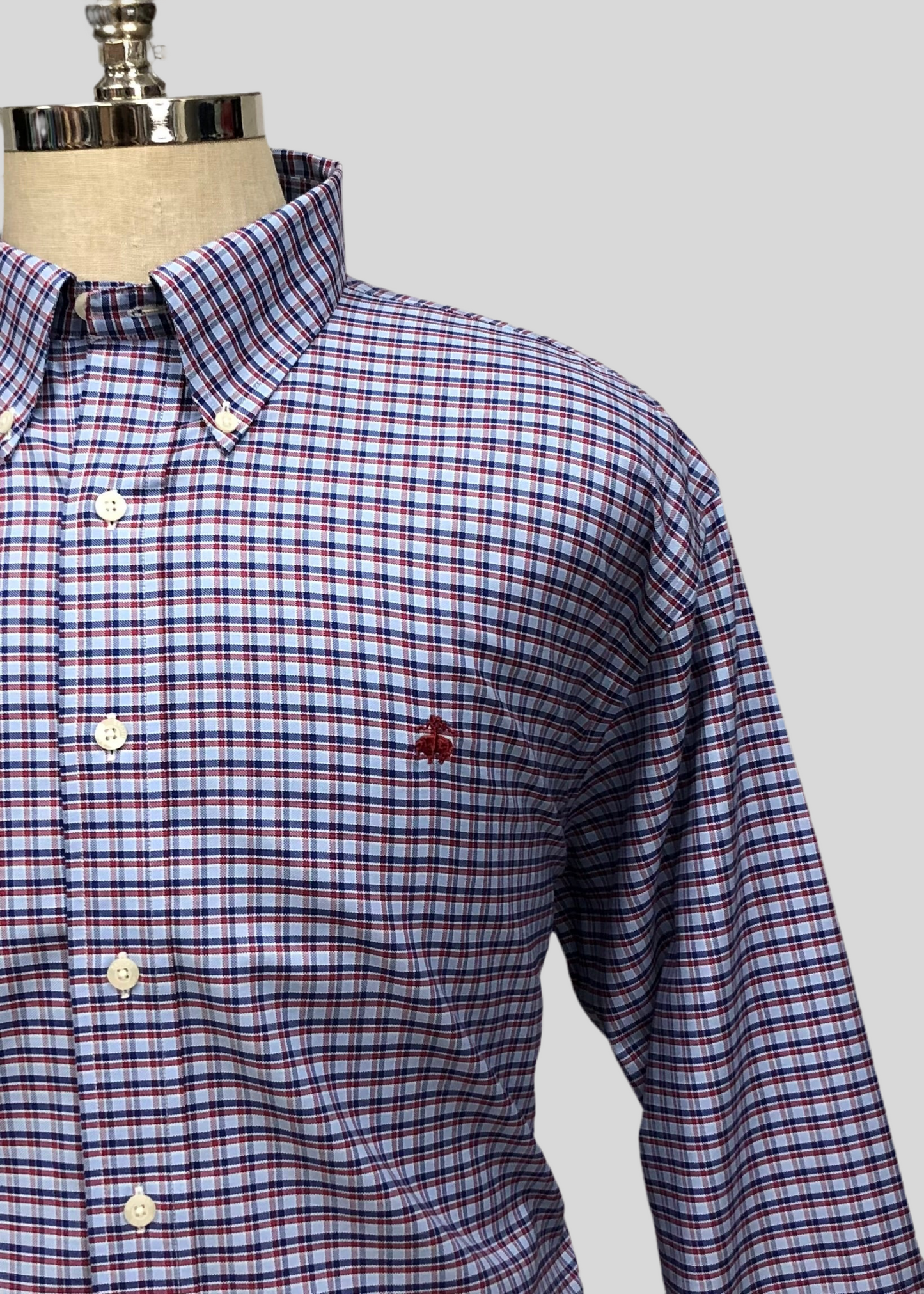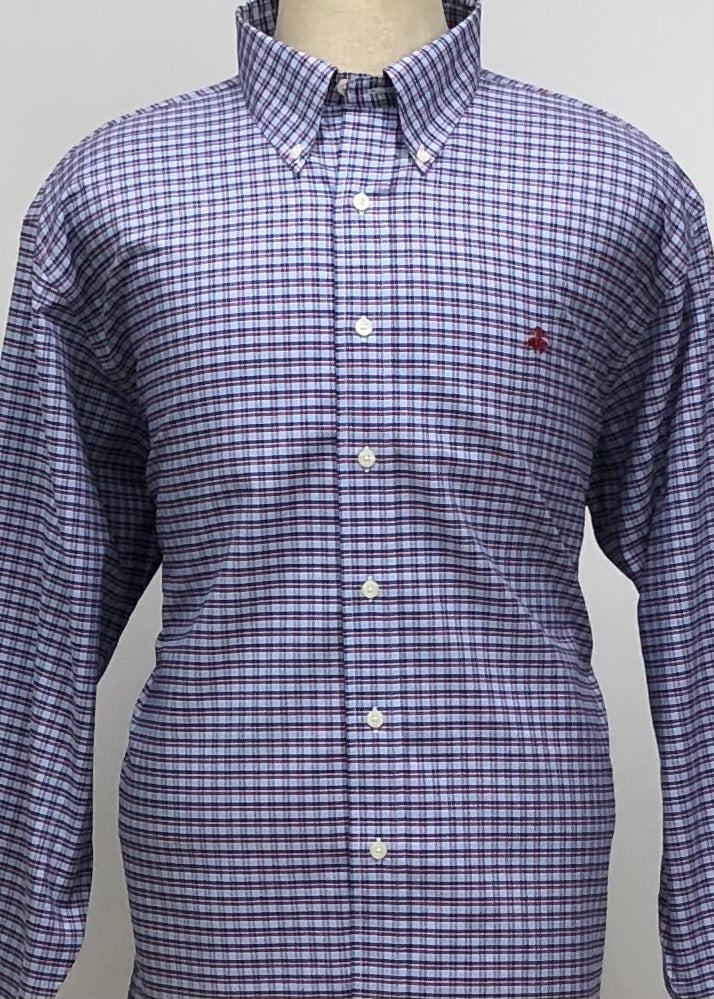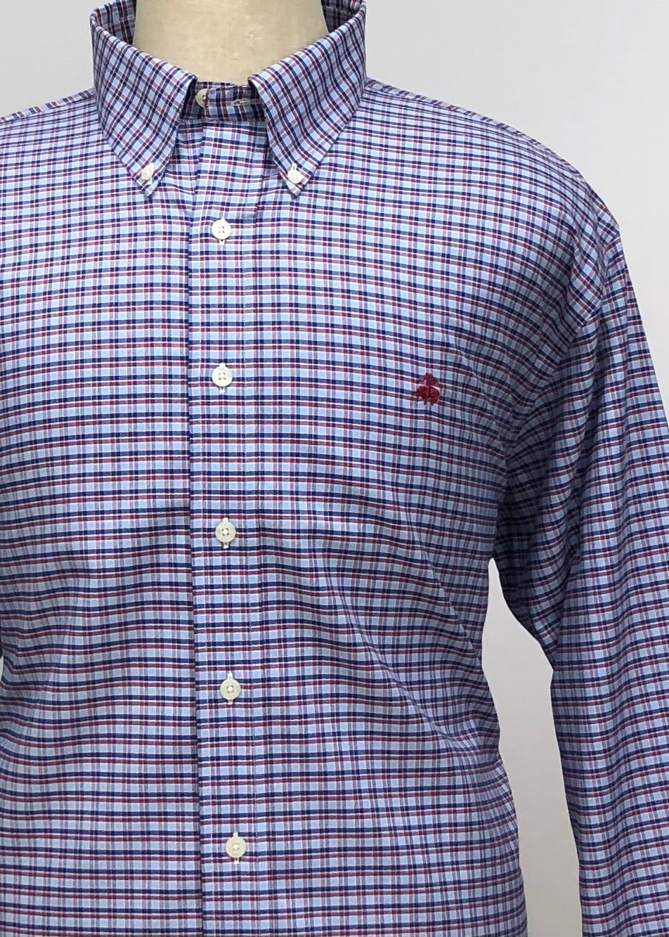 Camisa Brooks Brothers 🐑 color azul grisaceo con patrón de cuadros azul navy y rojo Talla XXL Entalle Regular