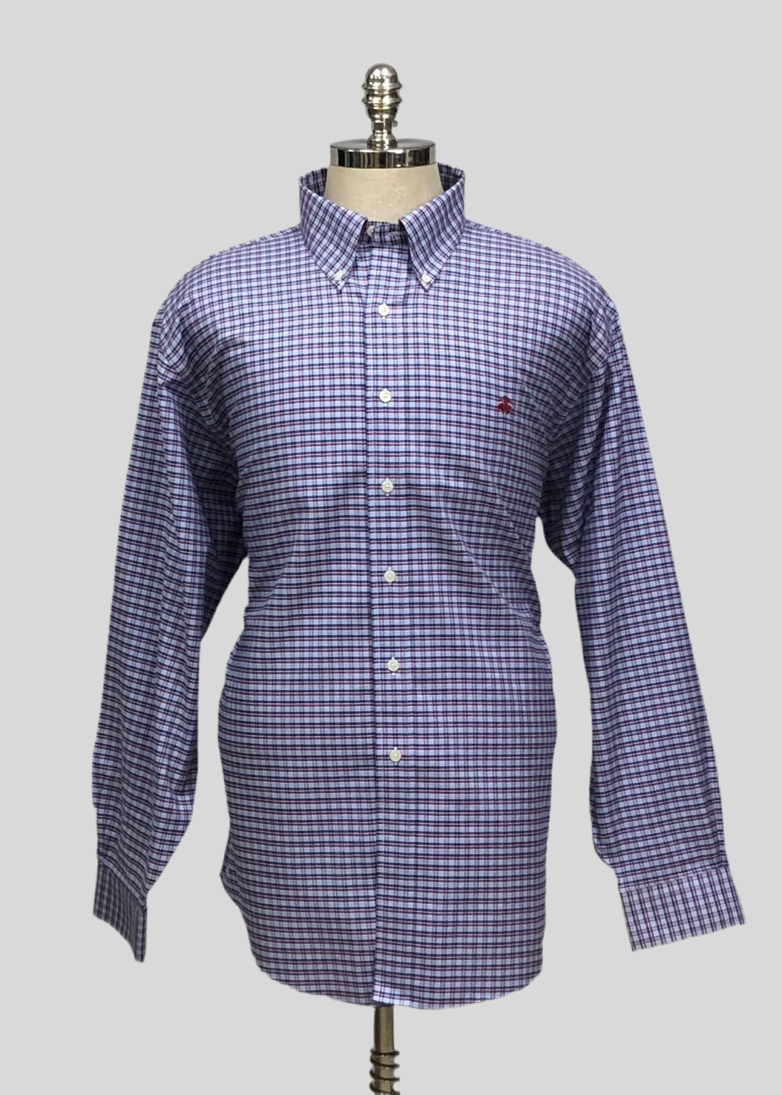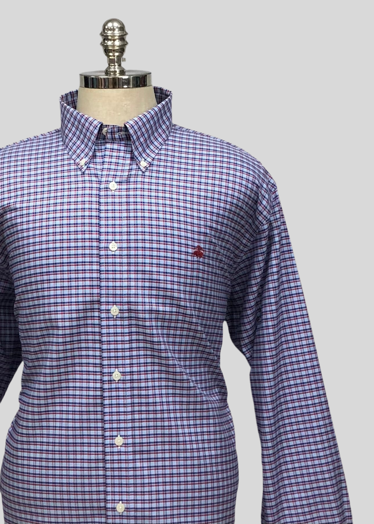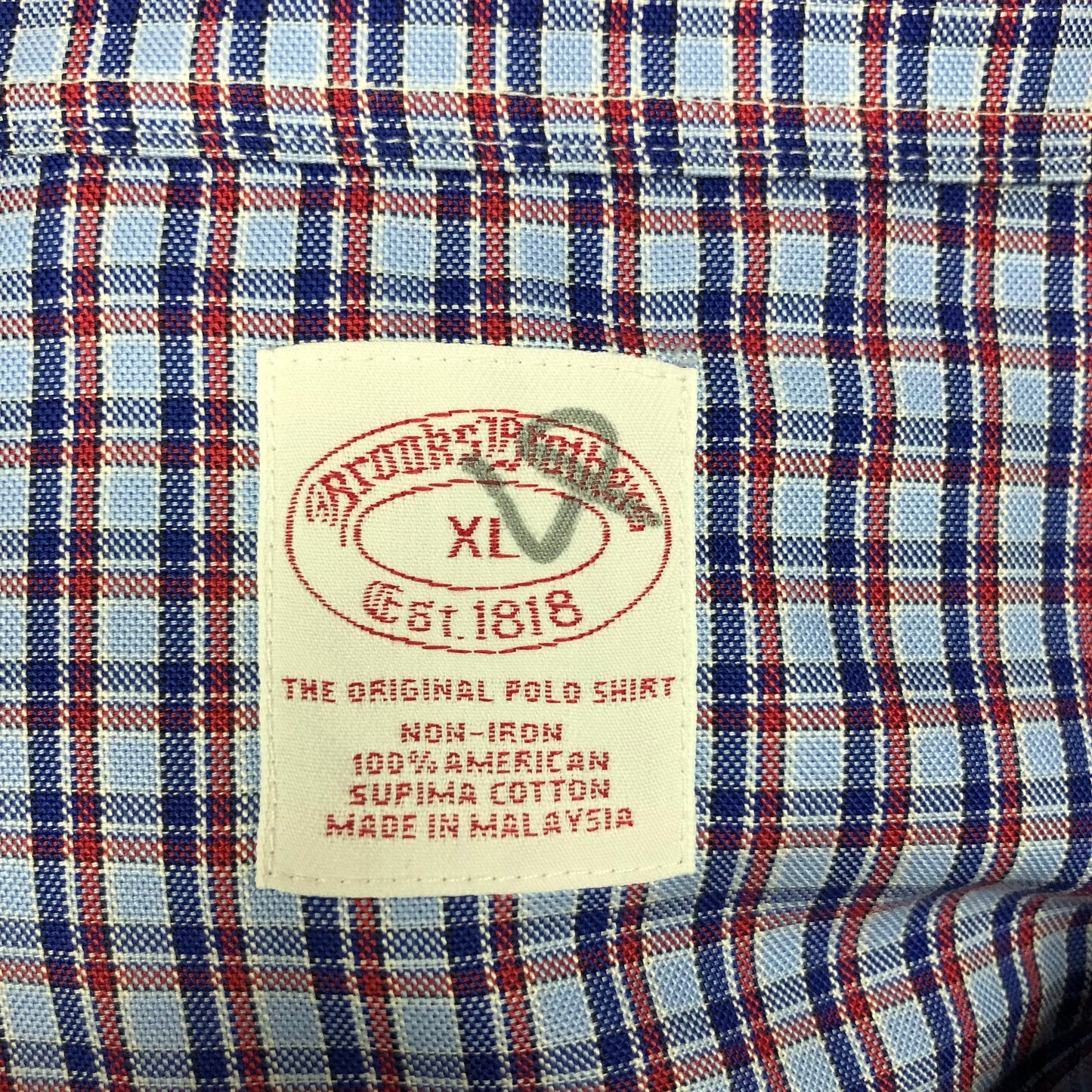 Camisa Brooks Brothers 🐑 color azul grisaceo con patrón de cuadros azul navy y rojo Talla XXL Entalle Regular