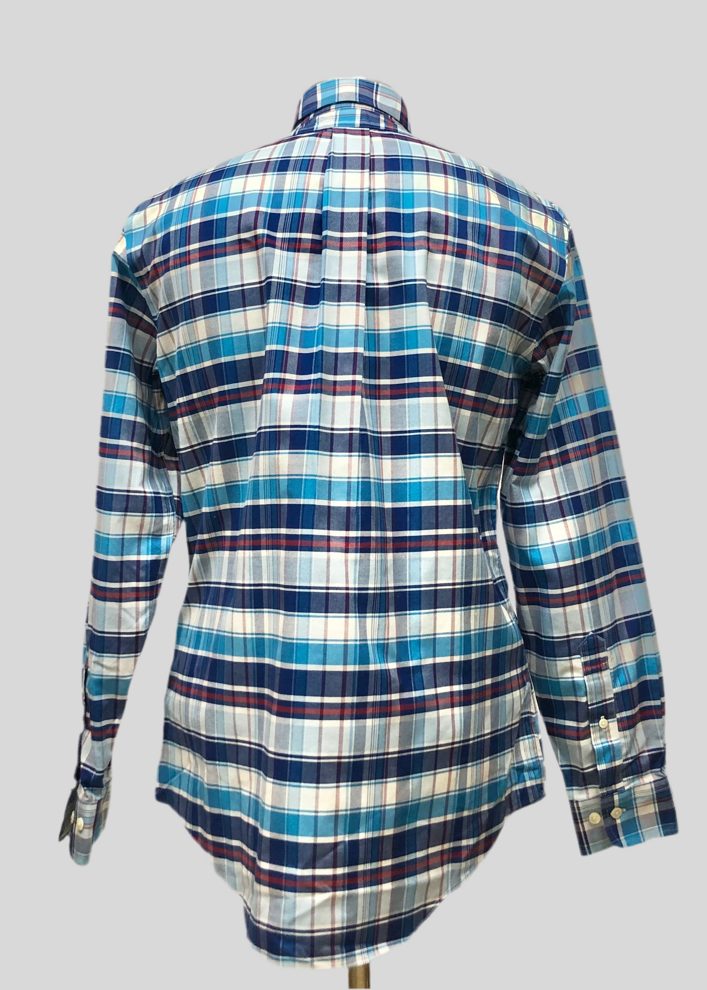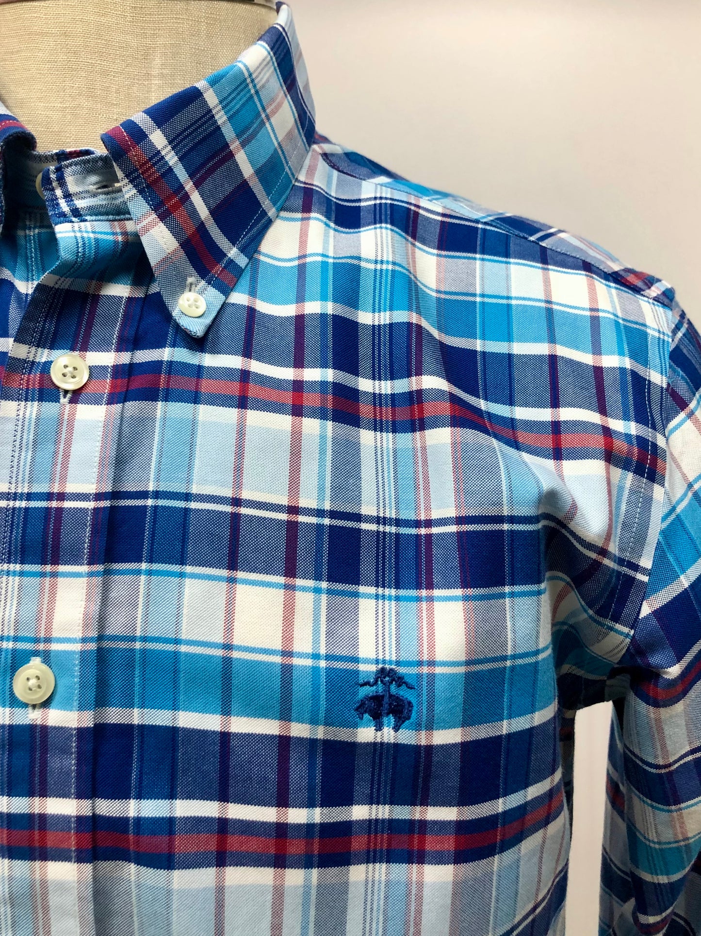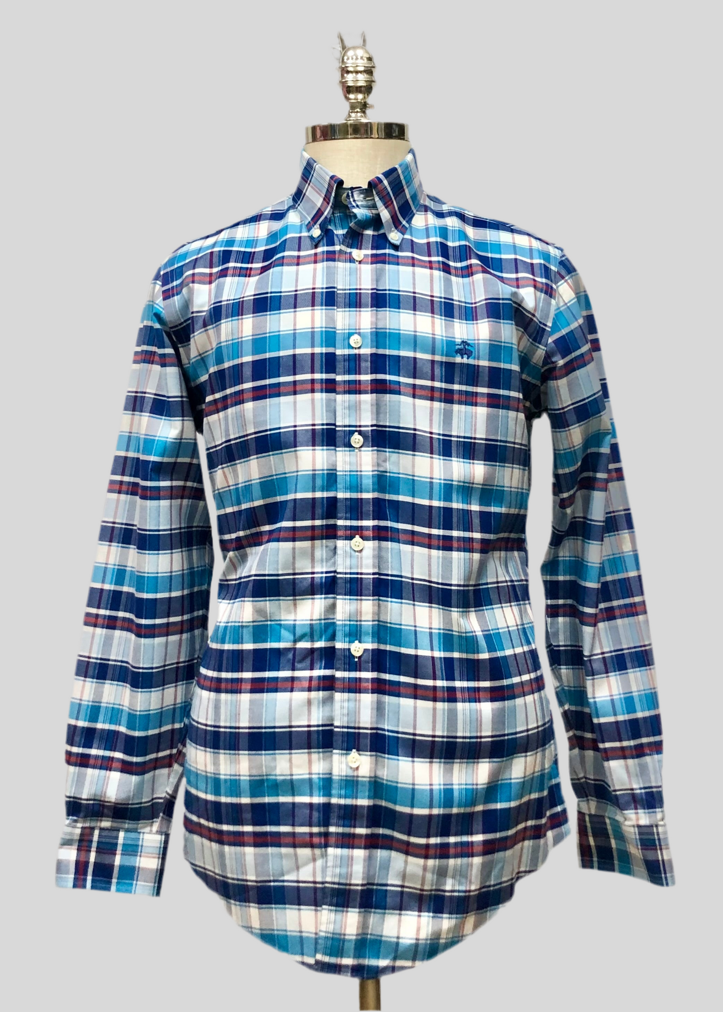 Camisa Brooks Brothers 🐑 color blanco con cuadros tartán en azul, turquesa y rojo Talla M Entalle Regular