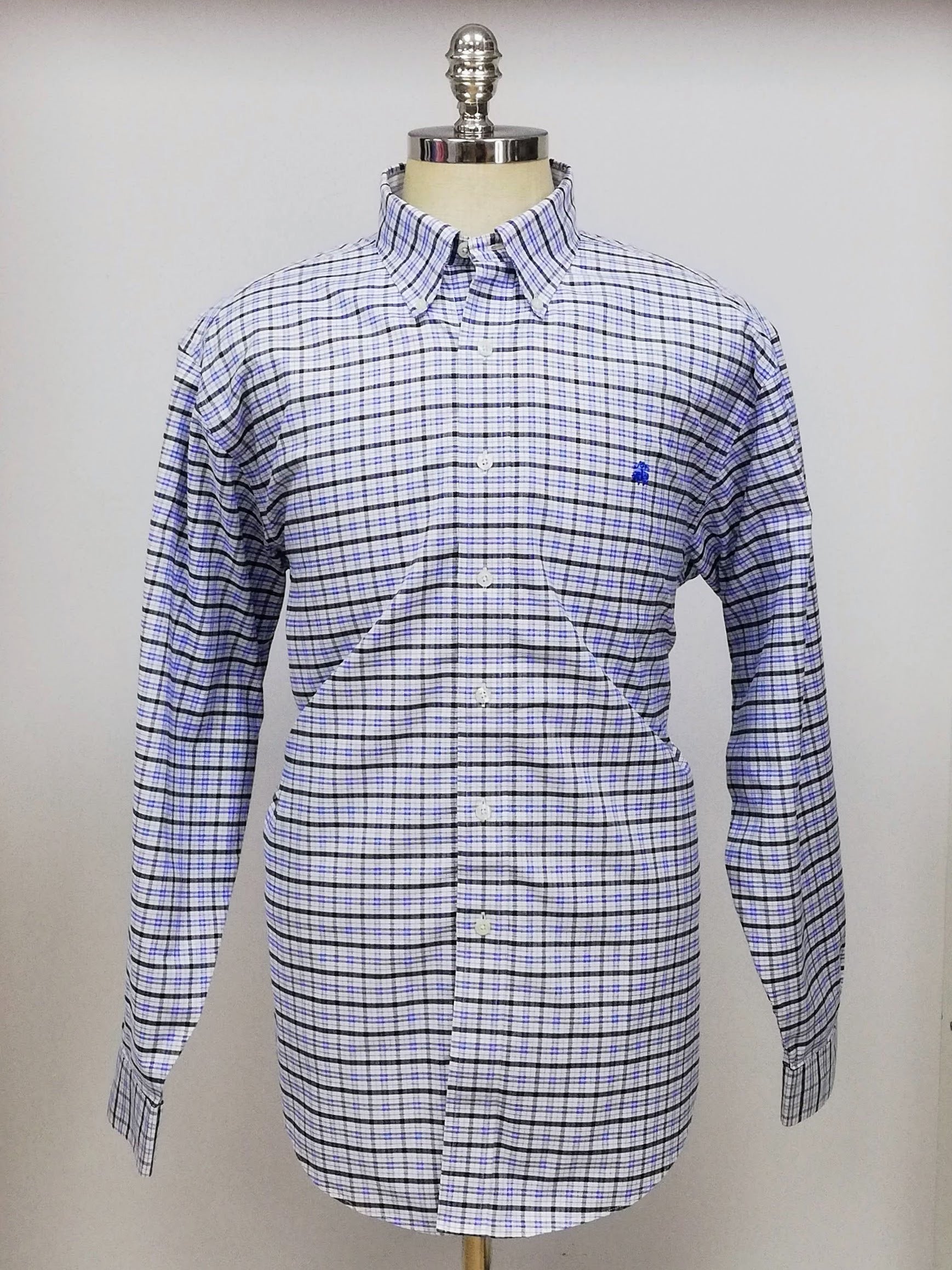 Camisa Brooks Brothers 🐑 color blanco con cuadros tartán en azul y negro Talla XL Entalle Regular