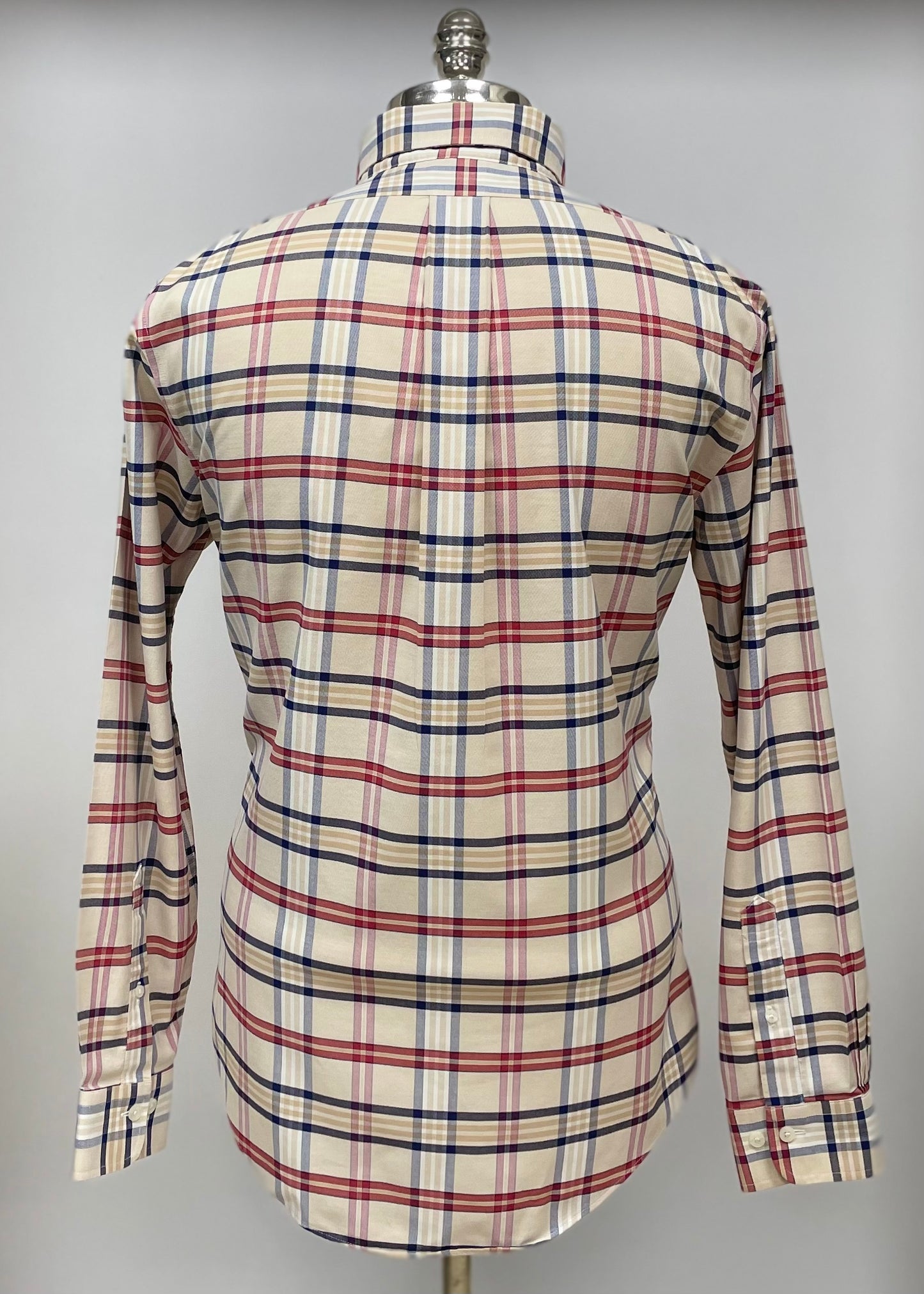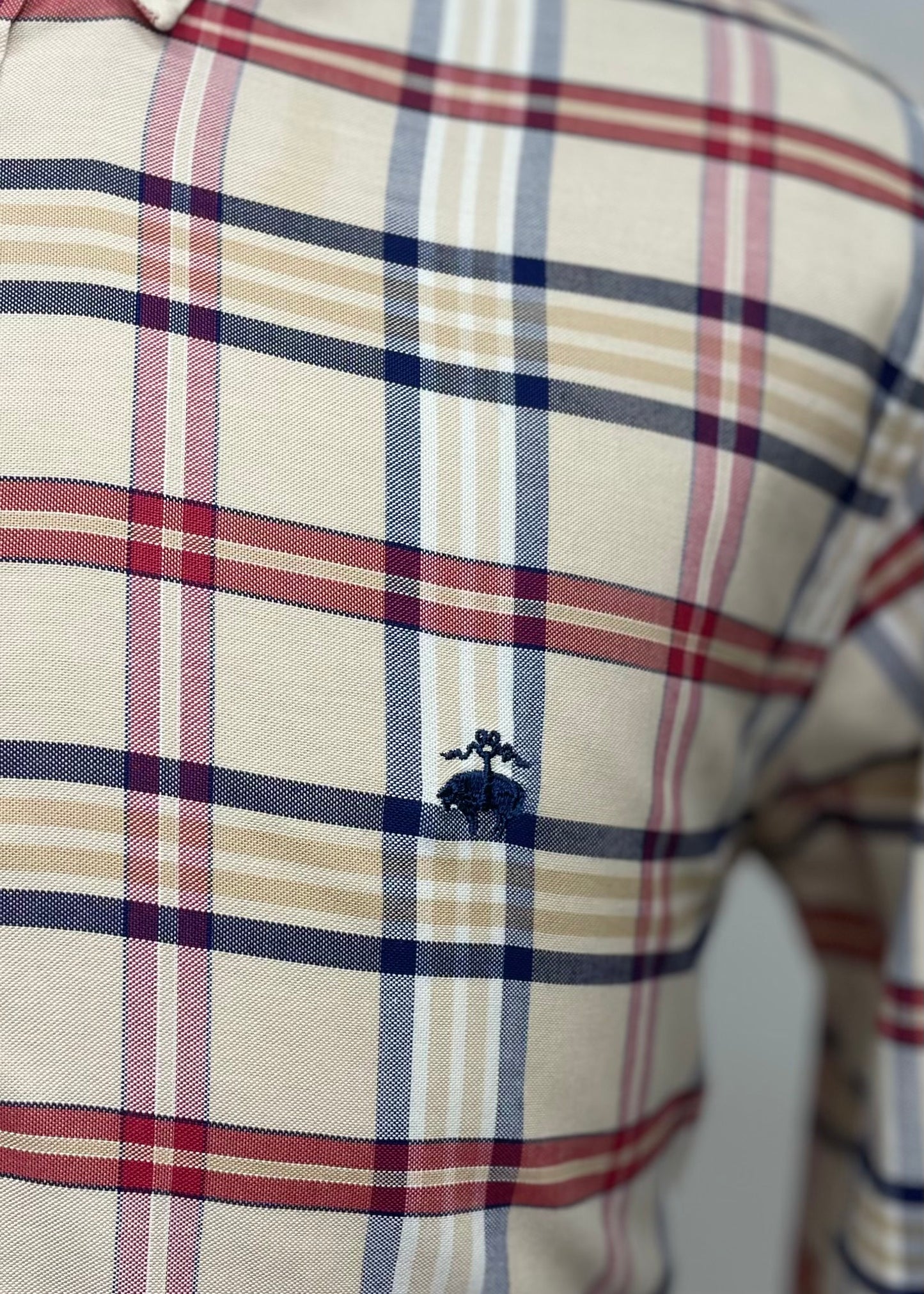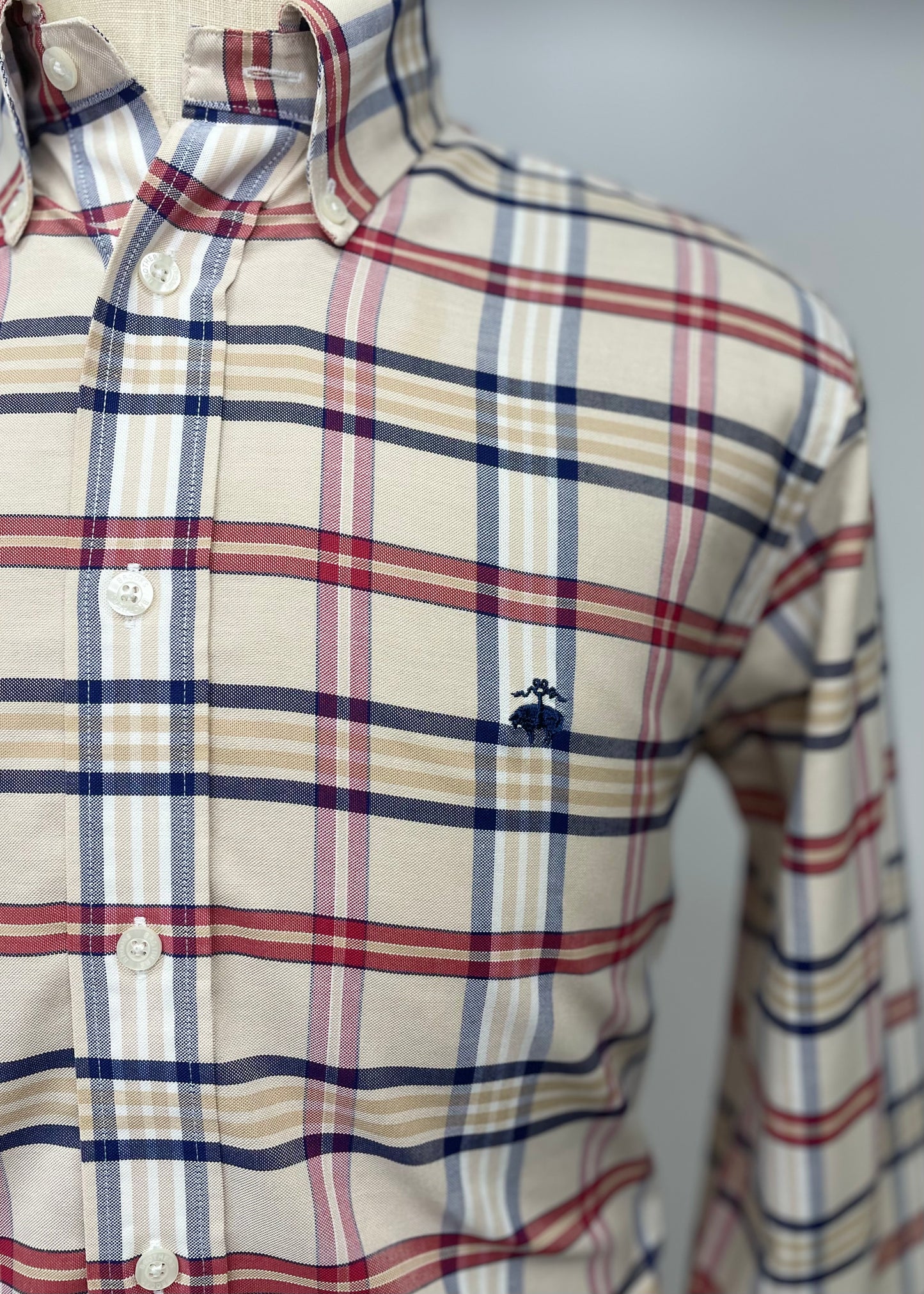 Camisa Brooks Brothers 🐑 color blanco con cuadros tartán en kaki, rojo y azul Talla M Entalle Regular