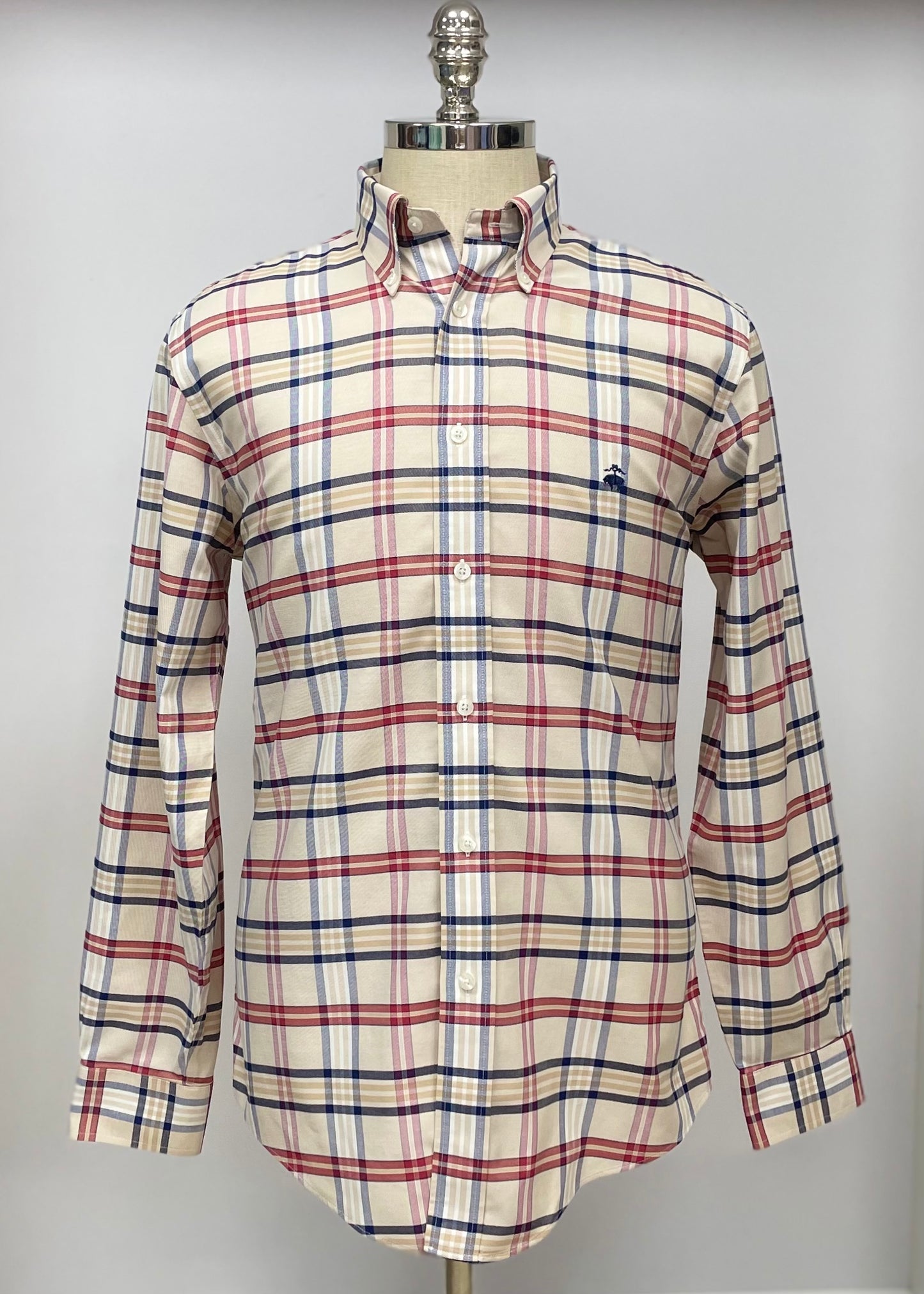 Camisa de botones Brooks Brothers 🐑 - Talla Medium - Entalle Regular - Manga larga - Color Blanco con patrón de cuadros en color kaki, rojo y azul con logo bordado en azul navy - Tela 100% algodón Supima - Non Iron (sin planchado) - Cuello en punta abotonada - Como nuevo 10/10 - Precio $40 💵 DM 📩 Por si tiene alguna consulta