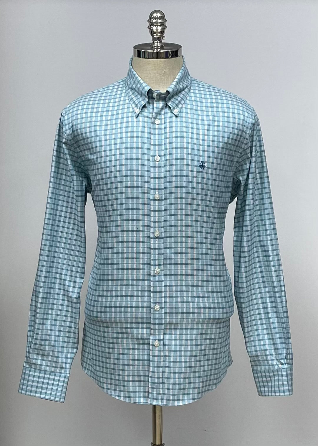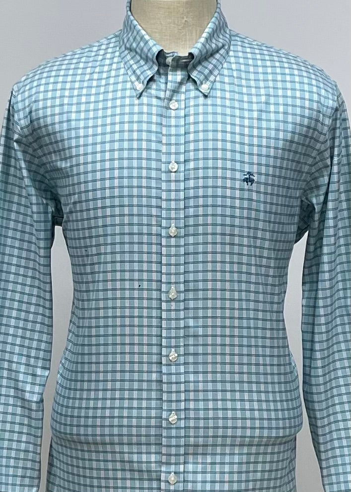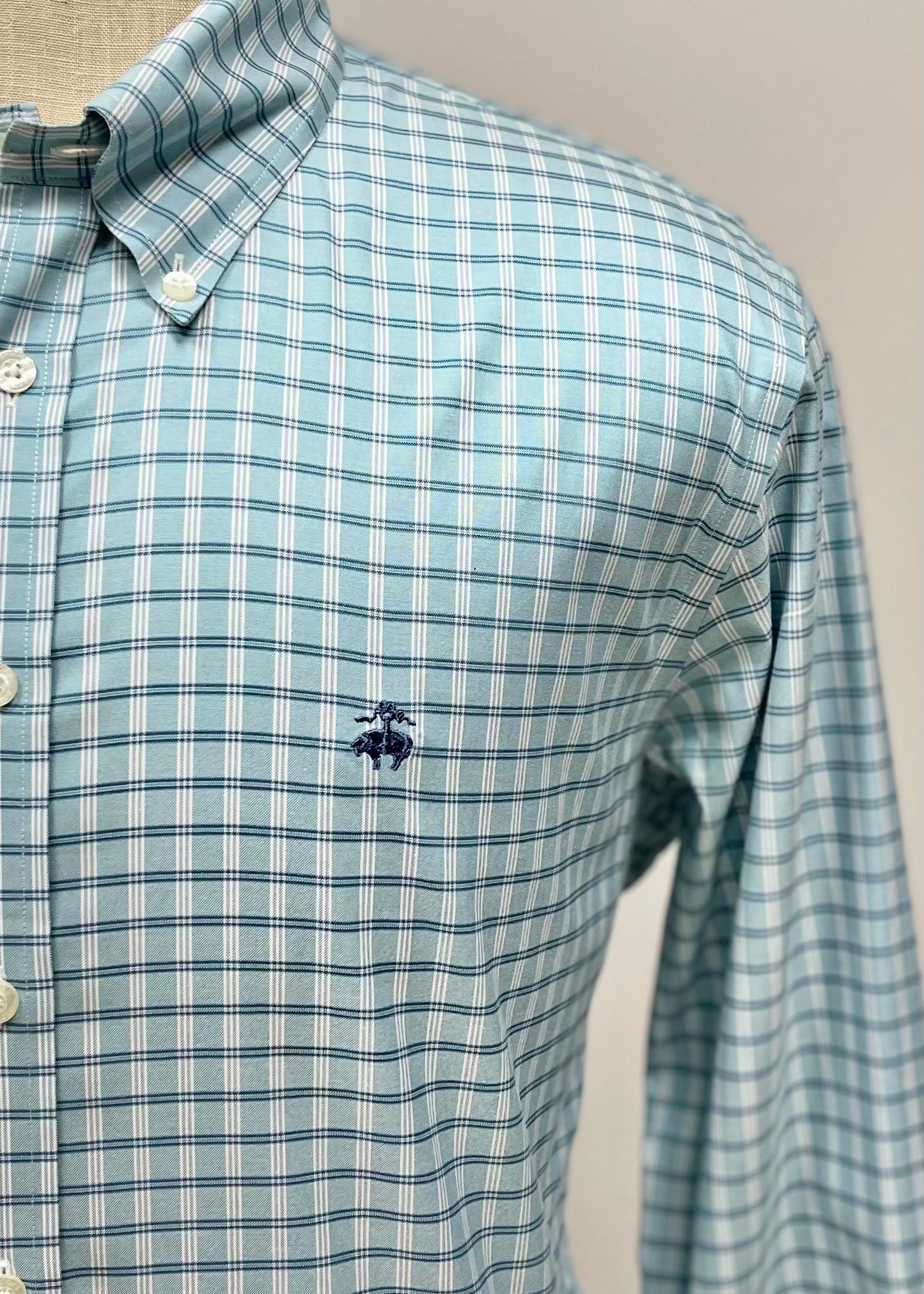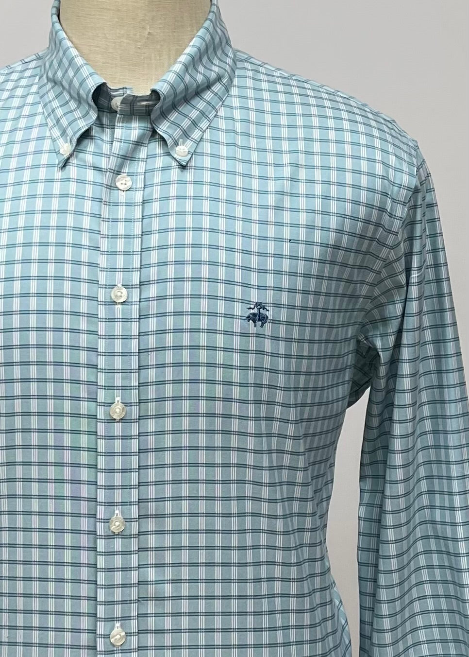 Camisa de botones Brooks Brothers 🐑 - Talla Large - Entalle Regular - Manga larga - Color Blanco con patrón de cuadros en color verde esmeralda y negro con logo bordado en verde olivo - Tela 100% algodón Supima - Non Iron (sin planchado) - Cuello en punta abotonada - Como nuevo 10/10 - Precio $40 💵 DM 📩 Por si tiene alguna consulta