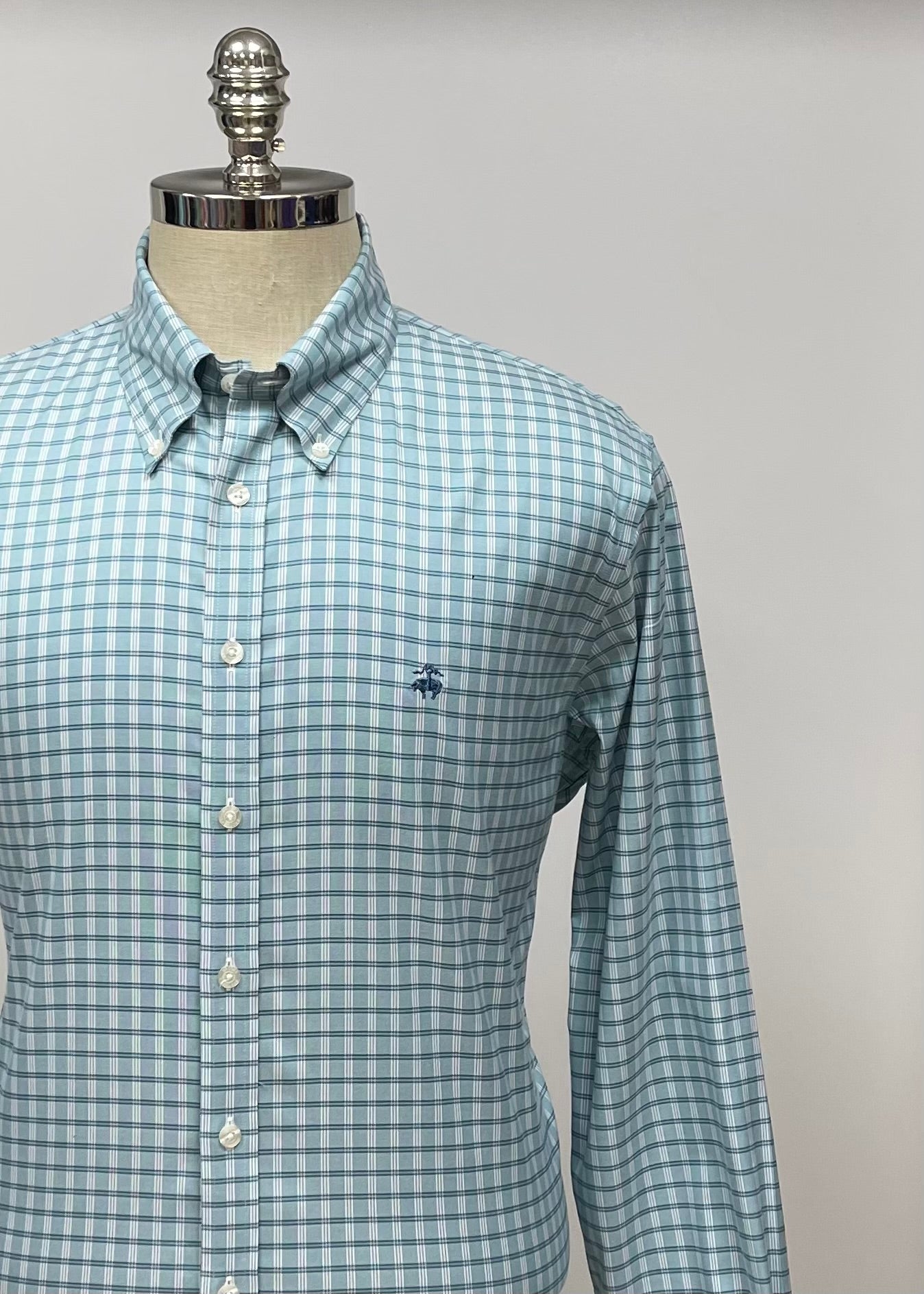 Camisa Brooks Brothers 🐑 color blanco con cuadros tartán en verde esmeralda y negro Talla L Entalle Regular