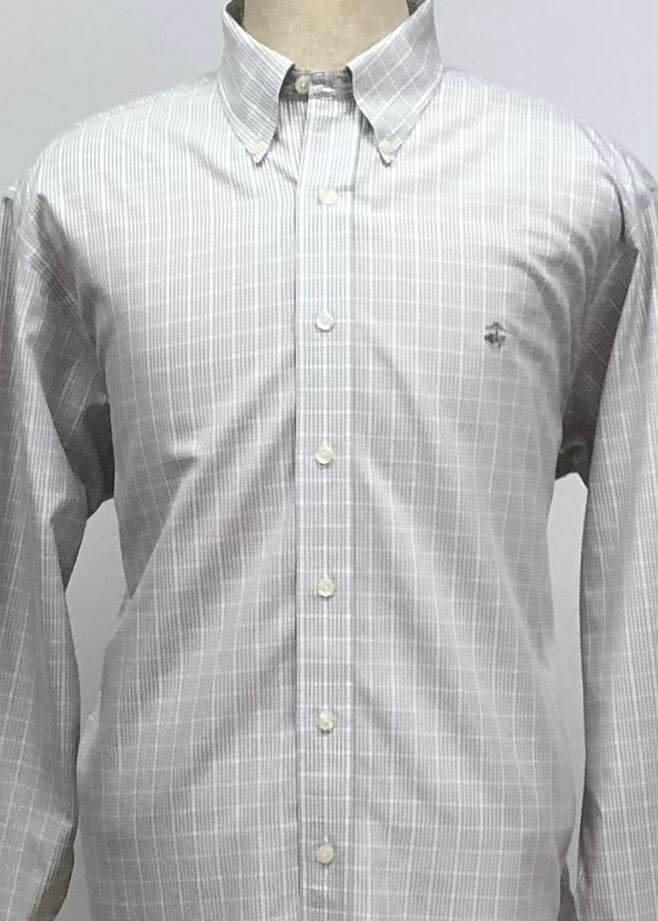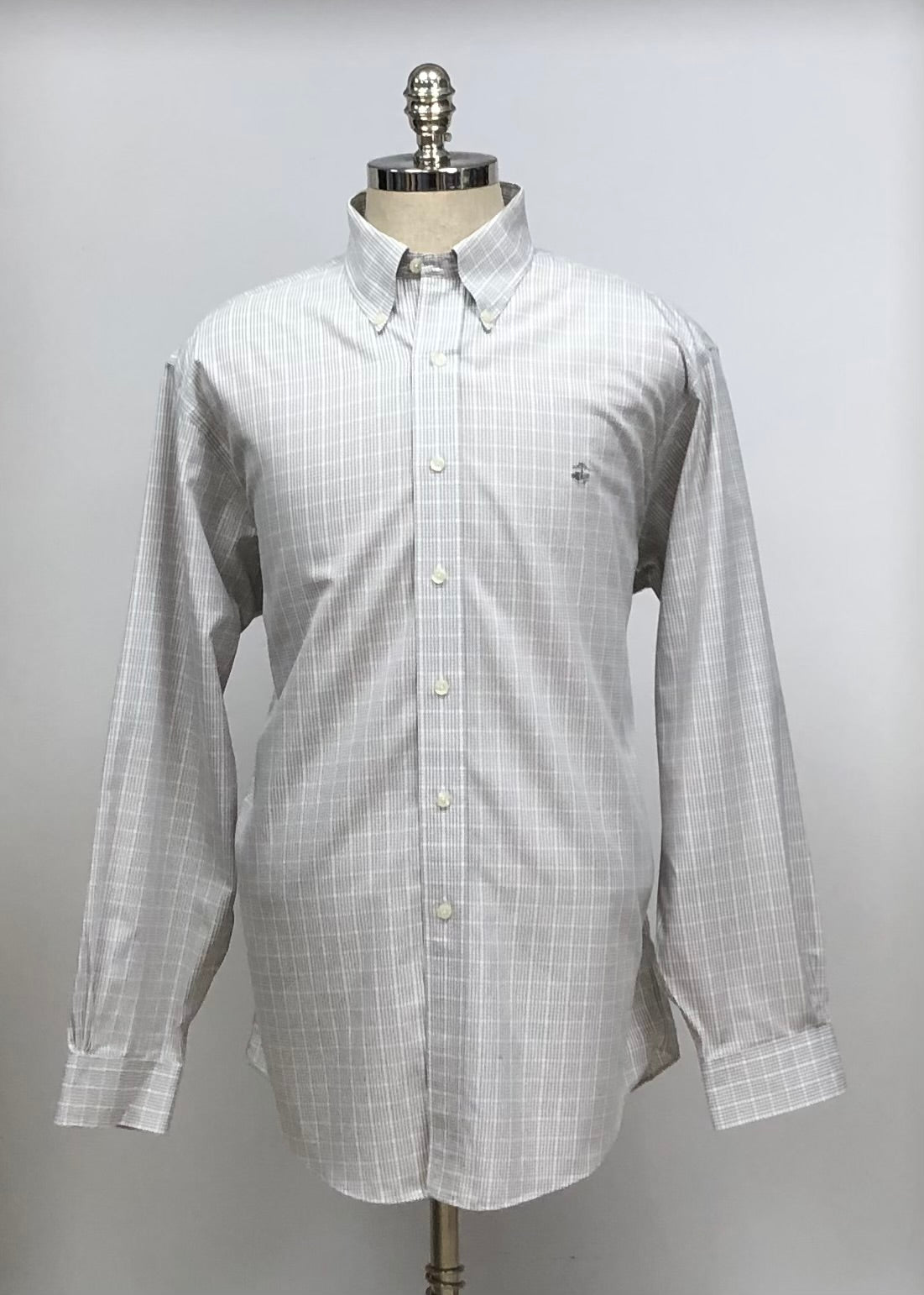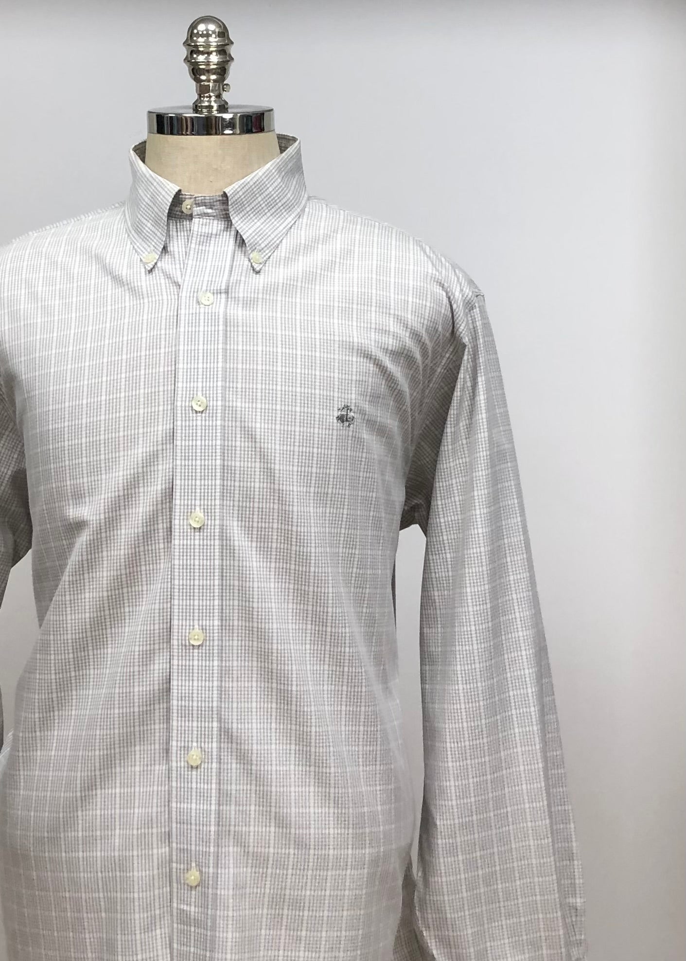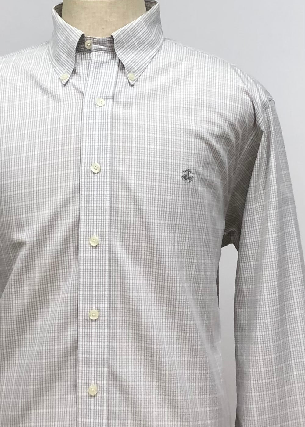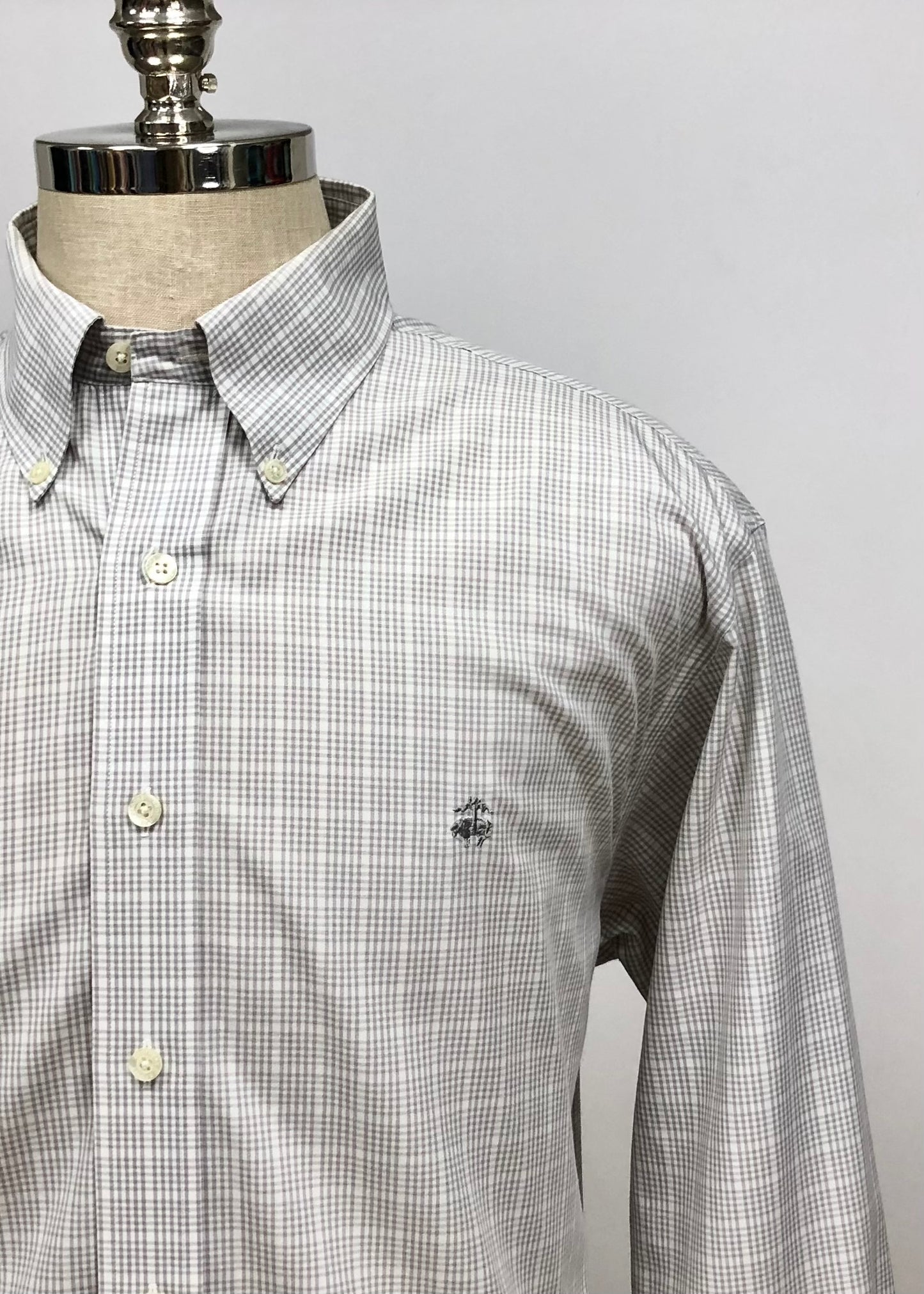 Camisa Brooks Brothers 🐑 con patrón de cuadros gris claro y blanco Talla XL Entalle Regular