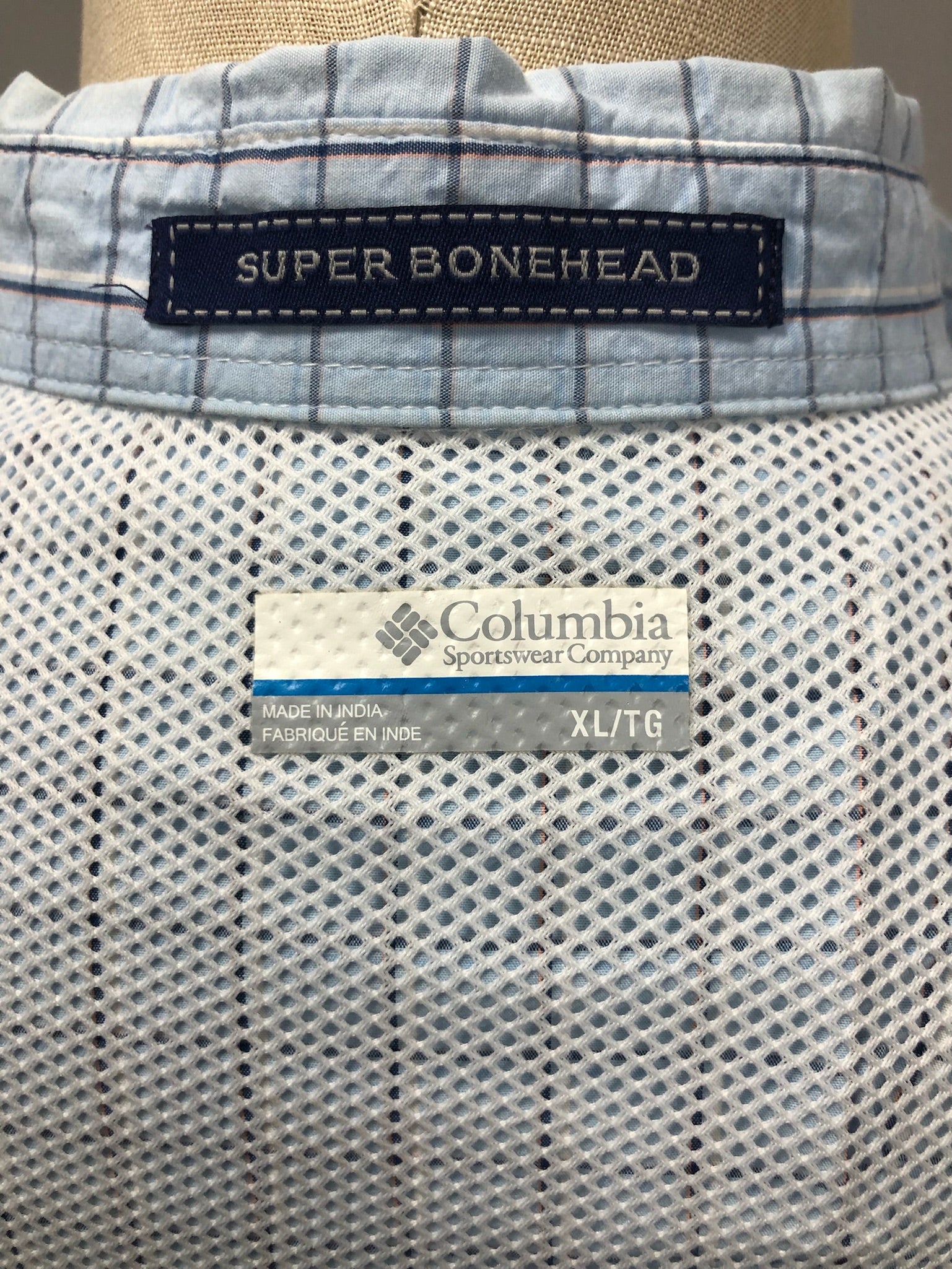 Camisa Columbia 🔹 Modelo Super Bonehead con patrón de cuadros en celeste, negro y blanco Manga larga Talla XL