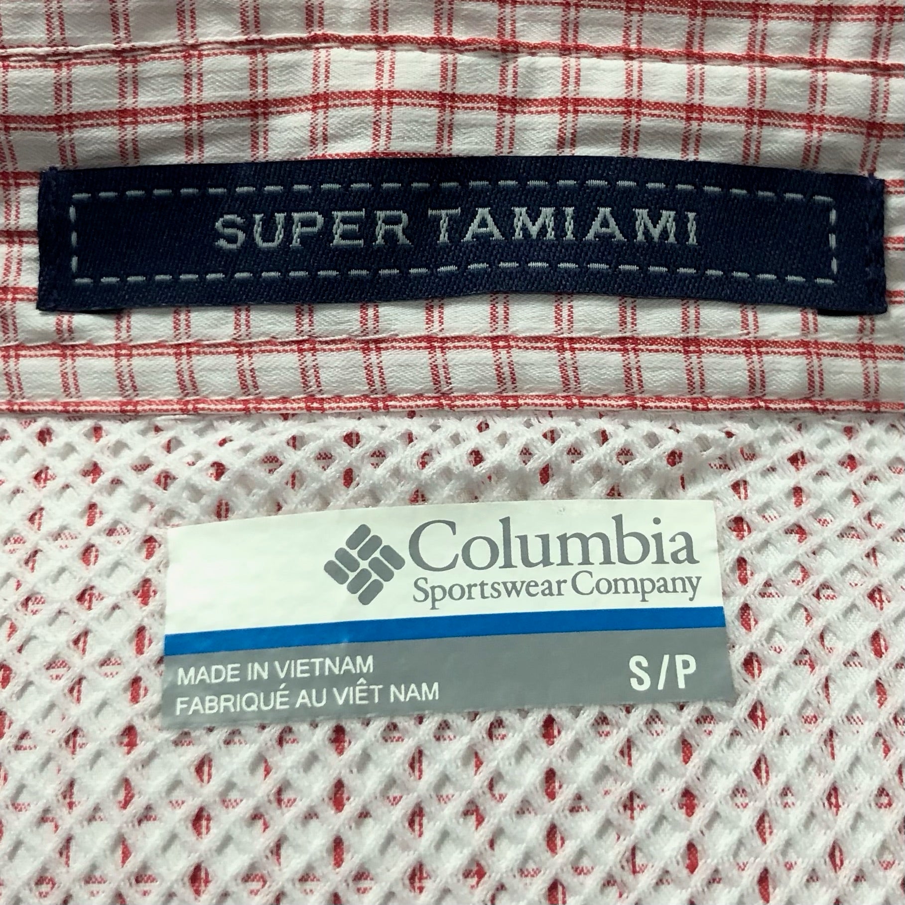 Camisa Columbia 🔹 Super Tamiami Color blanco con patrón de cuadros en rojo Talla S