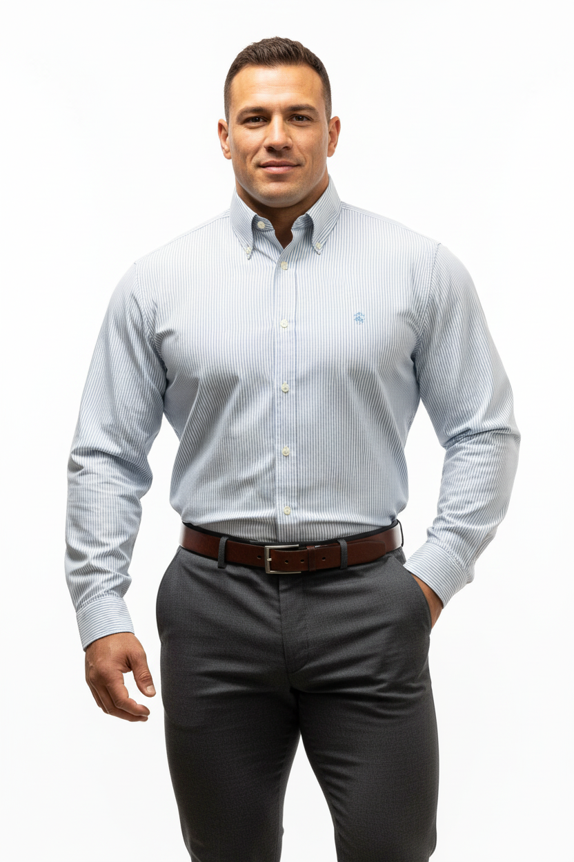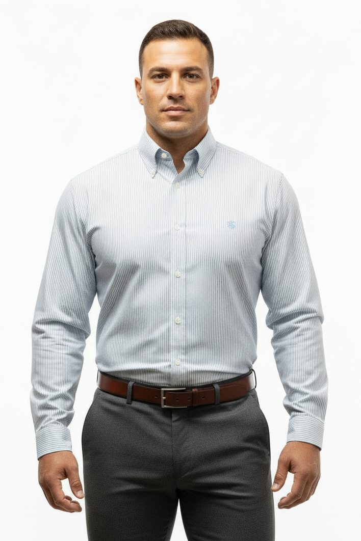 Camisa de botones Brooks Brothers 🐑 Oxford de rayas en celeste y blanco Talla L Entalle Regular