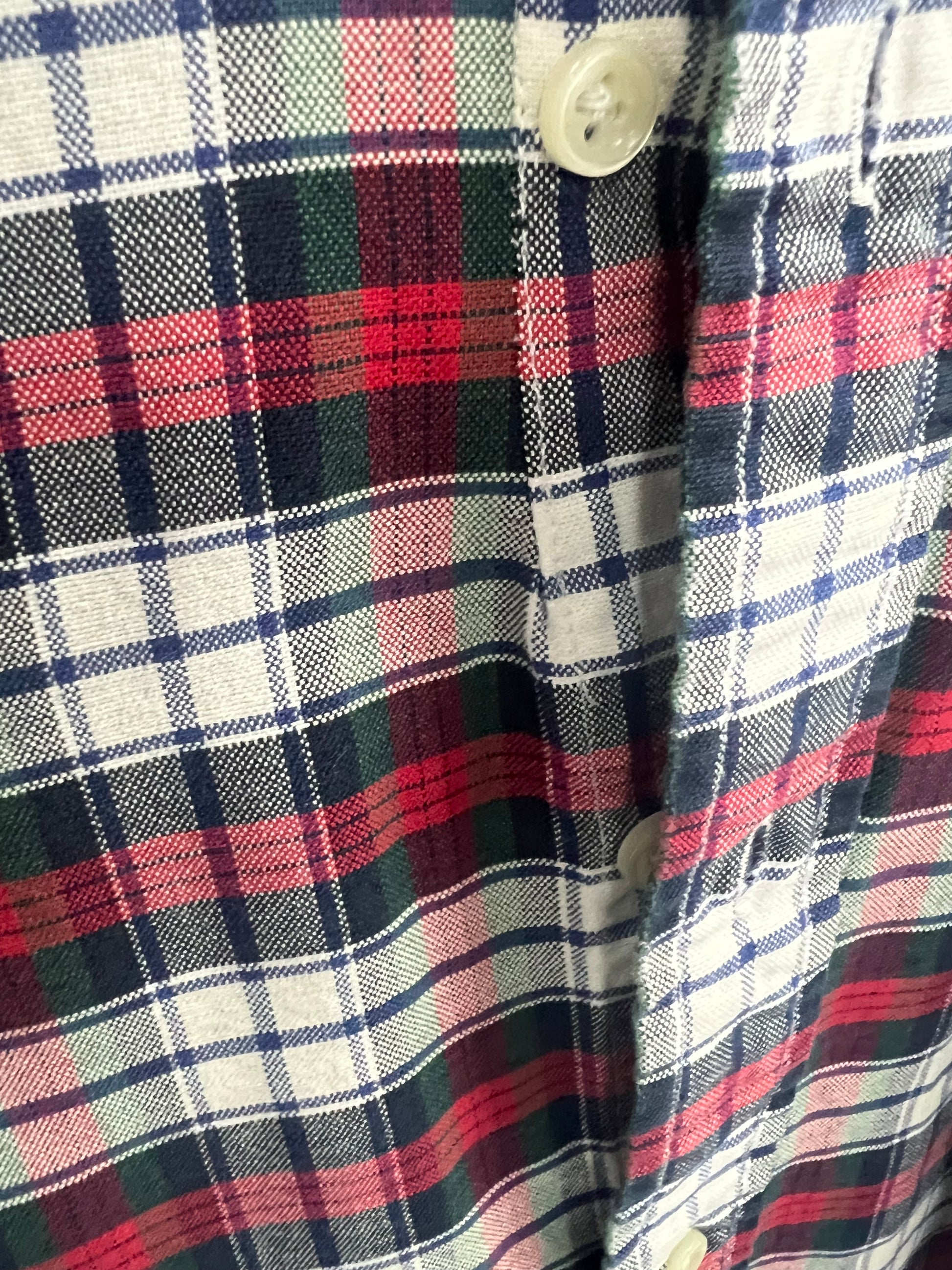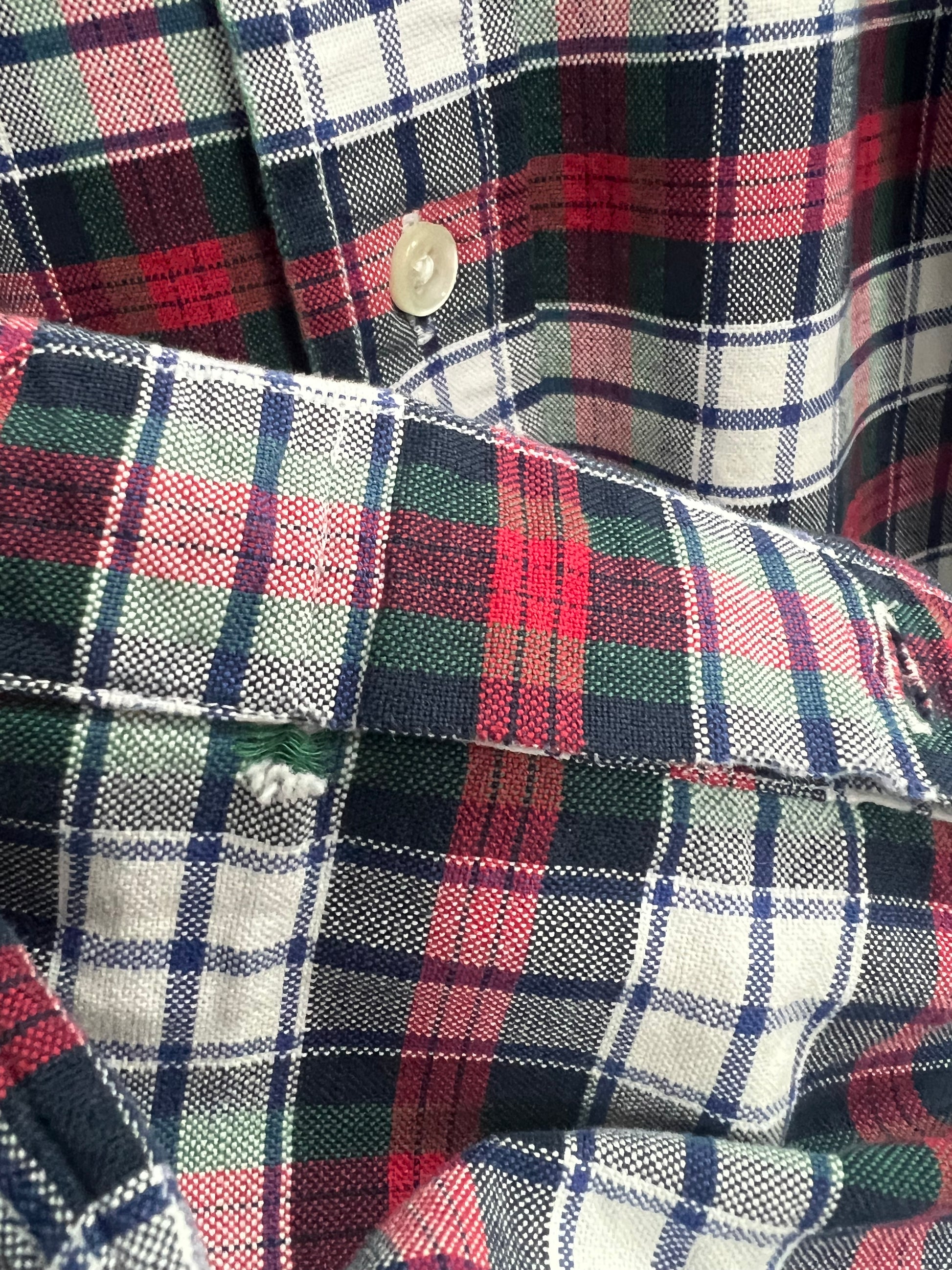 Camisa de botones Polo Ralph Lauren 🏇🏼- Talla Large - Entalle Custom Fit - Manga larga - Patron de cuadros tartán color rojo, verde, azul navy y blanco con logo bordado en color azul Navy  - Tela 100% algodón oxford - Cuello en punta abotonada - Buen estado 8/10 (tiene detalle de rotos en el cuello y en las mangas - ver última fotos) - Precio $15 💵 DM 📩 Por si tiene alguna consulta