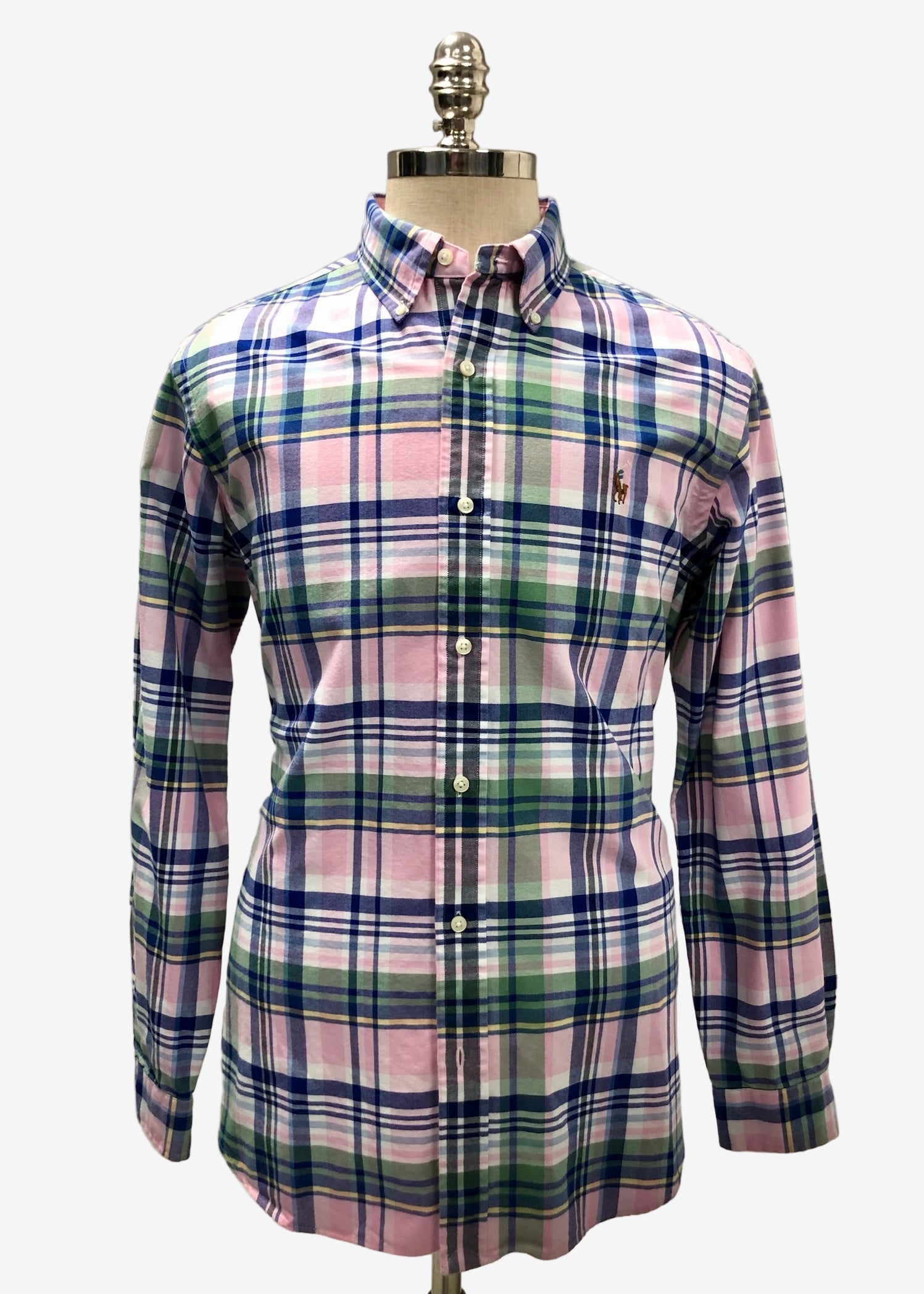 Camisa de botones Polo Ralph Lauren 🏇🏼 Oxford de cuadros tartán en color verde, rosado, azul y blanco Talla L Entalle Clásico