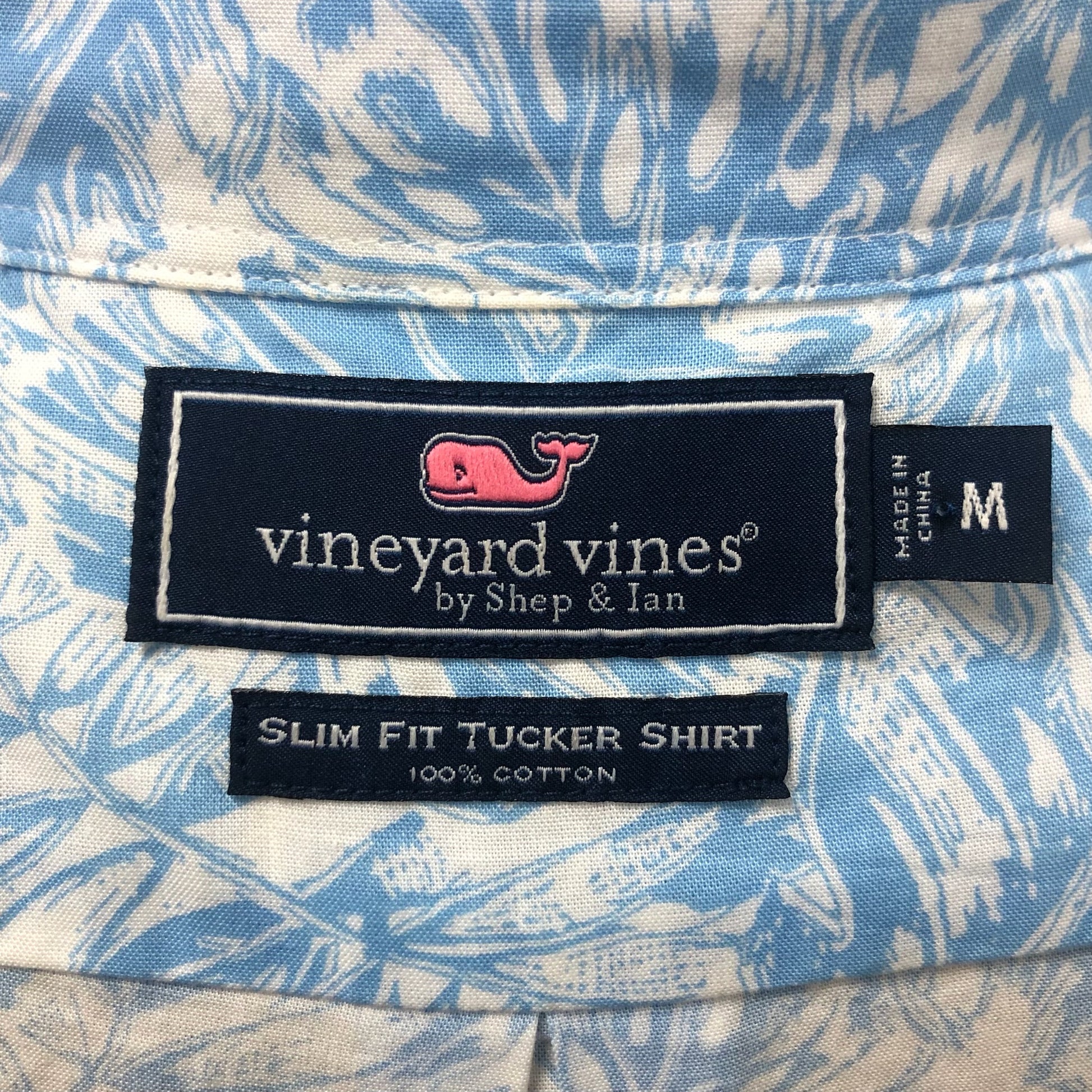 Camisa de botones Vineyard Vines 🐳 color blanco con diseño de Hojas en color celeste Talla M Entalle Slim Fit
