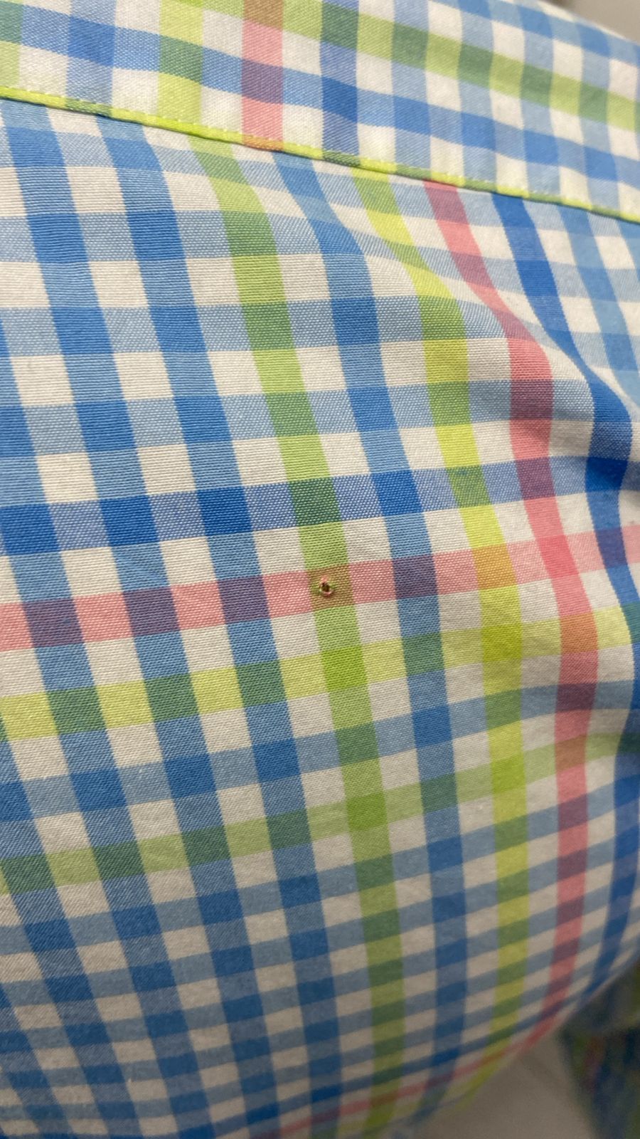 Camisa de botones Vineyard Vines 🐳 - Talla Small - Entalle Slim Fit - Manga larga - Color blanco con patrón de cuadros en color rosado, verde y celeste con logo bordado tradicional - Tela 100% de algodón - Cuello en punta abotonada - Buen estado 8/10 (tiene pequeño agujero en el hombro - ver última imagen) - Precio $30 💵 DM 📩 Por si tiene alguna consulta
