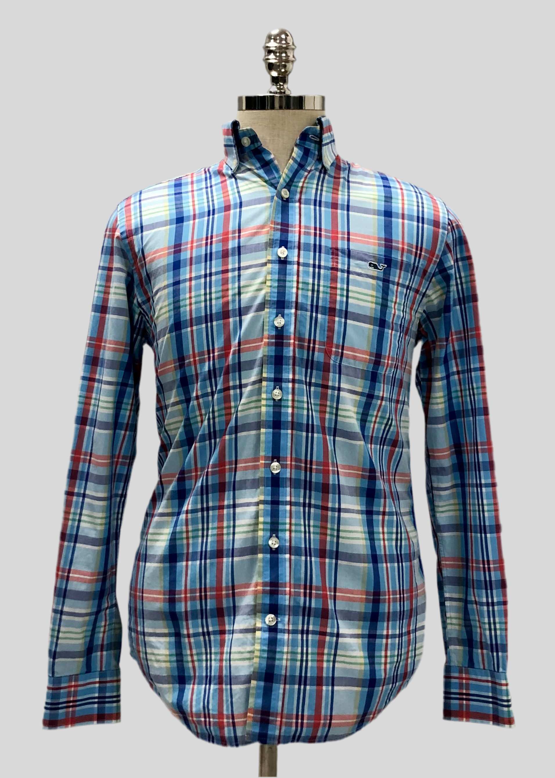 Camisa de botones Vineyard Vines 🐳 color celeste de cuadros en color rojo, azul y amarillo Talla S Entalle Slim Fit