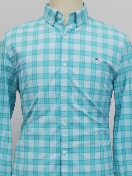 Camisa de botones Vineyard Vines 🐳 color celeste de cuadros en color turquesa y rosado Talla M Entalle Slim Fit