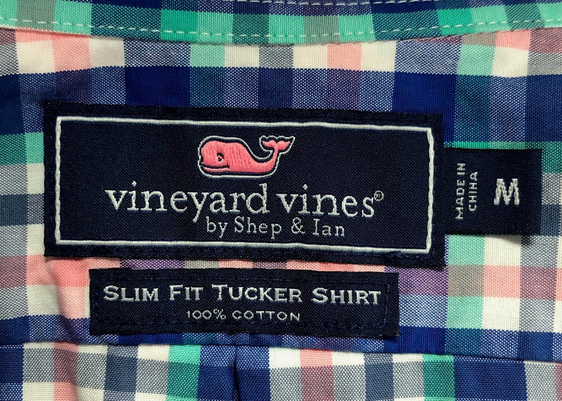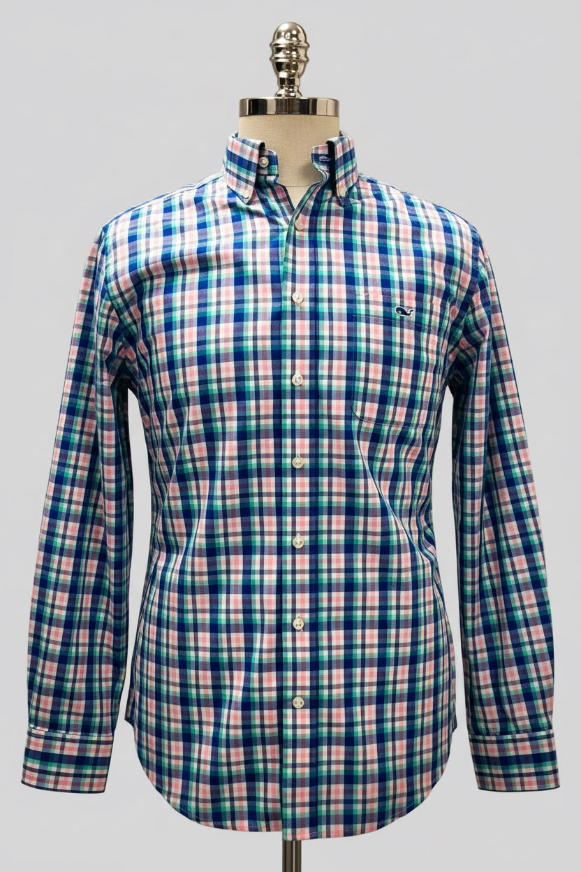 Camisa de botones Vineyard Vines 🐳 de cuadros en color azul, turquesa, rosado y blanco Talla M Entalle Slim Fit