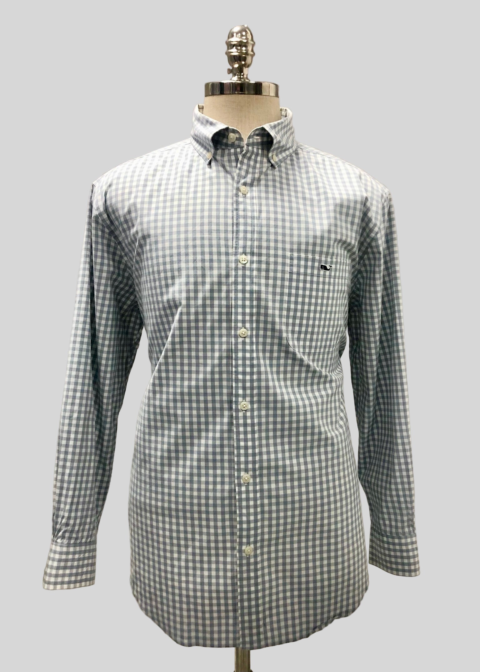 Camisa de botones Vineyard Vines 🐳 de cuadros gingham grandes en color gris y blanco Talla L Entalle Clásico