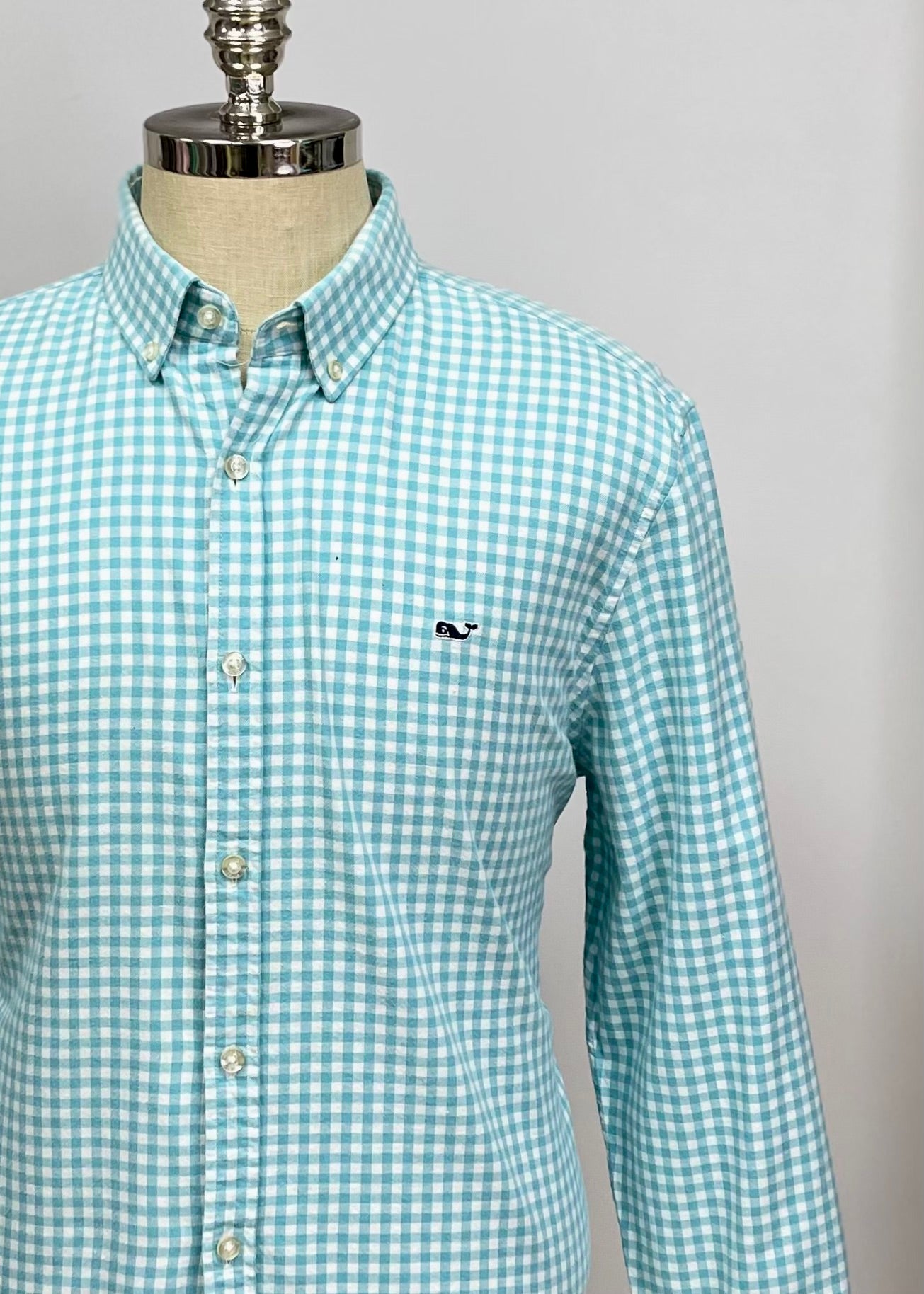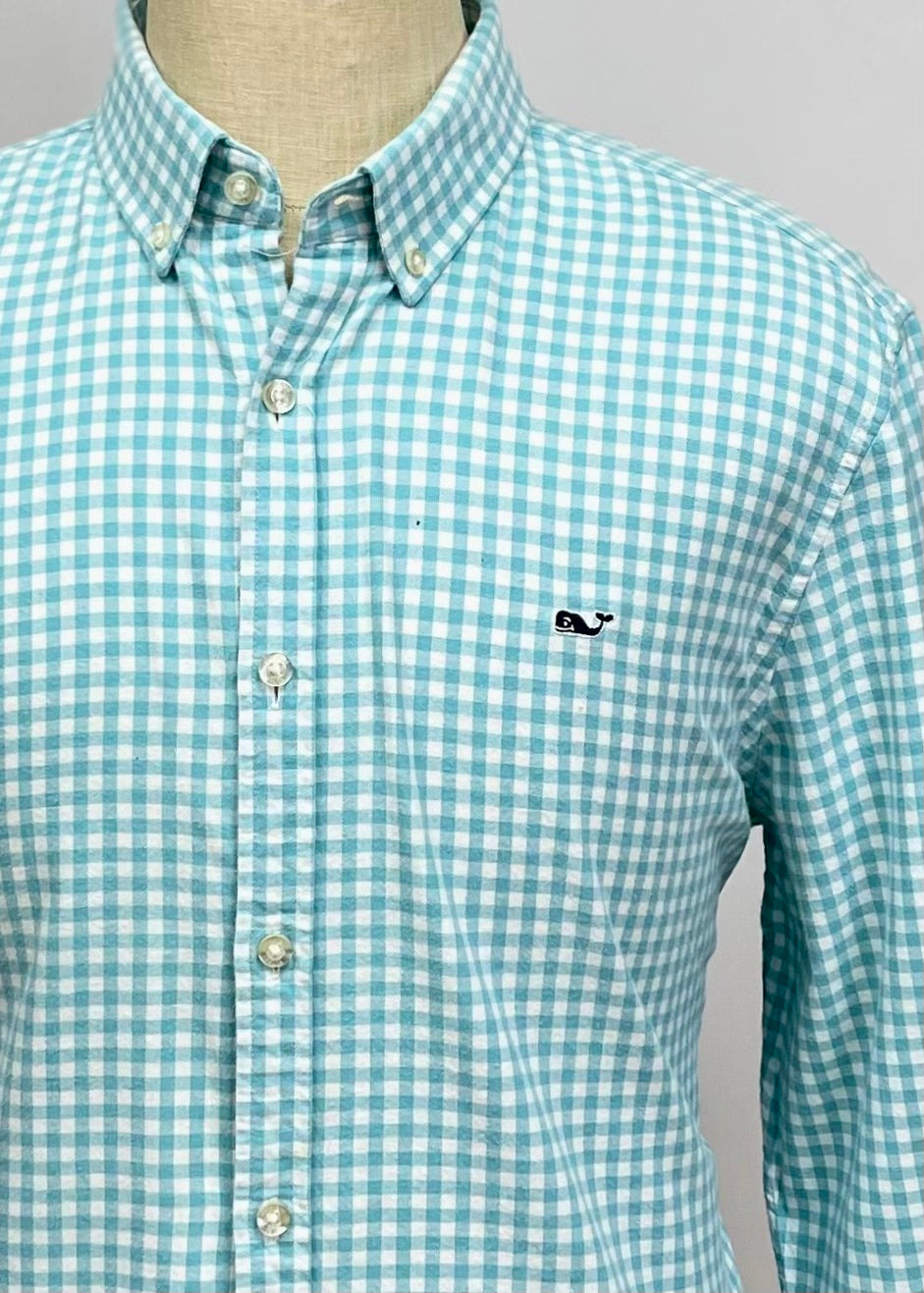 Camisa de botones Vineyard Vines 🐳 - Talla XL - Entalle Slim Fit - Manga larga - Patron de cuadros gingham en color turquesa y blanco con logo bordado tradicional - Tela 100 % de algodón - Cuello en punta abotonada - Como nuevo 10/10 - Precio $40 💵 DM 📩 Por si tiene alguna consulta