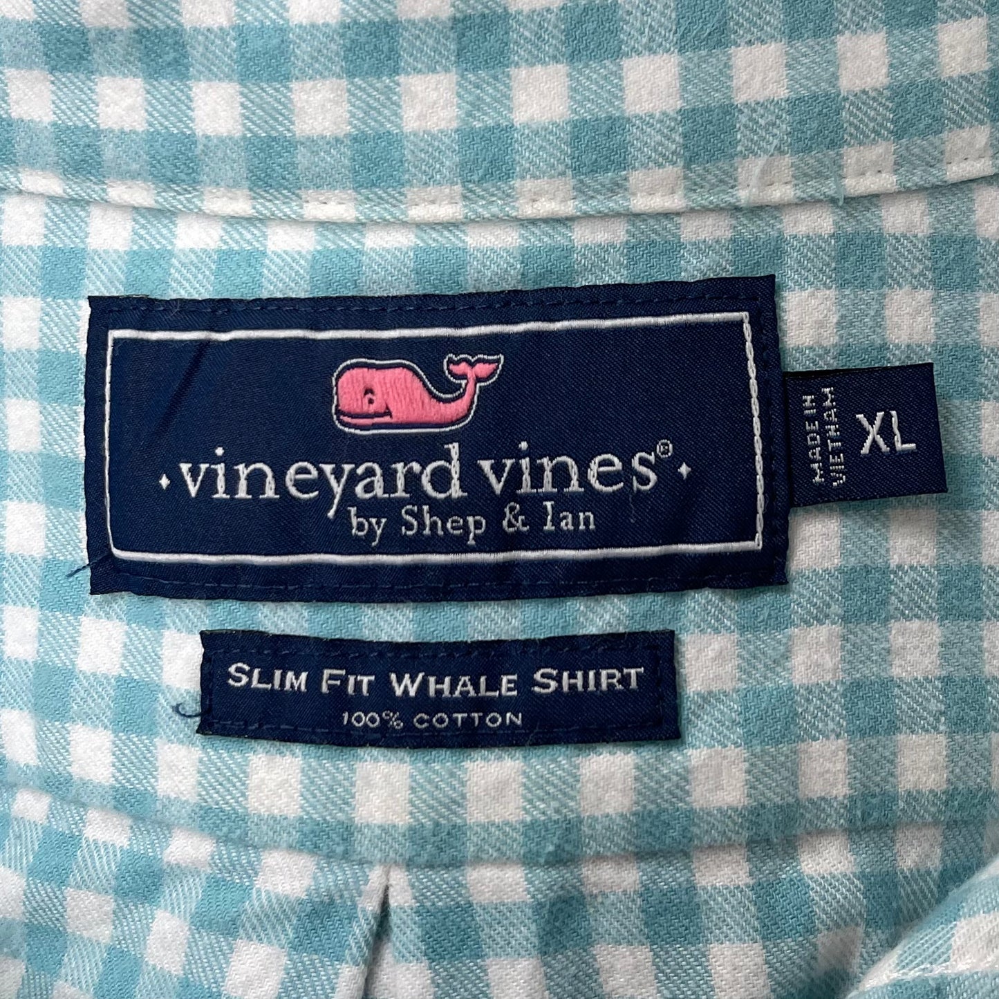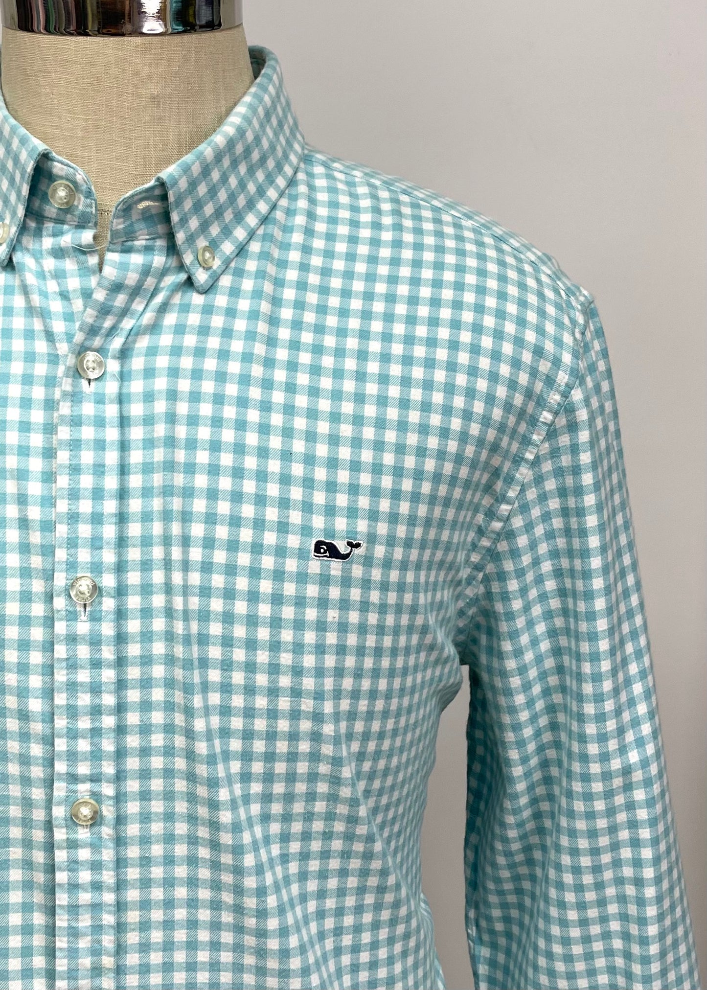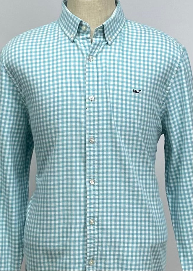 Camisa de cuadros Vineyard Vines 🐳 de cuadros gingham en color turquesa y blanco Talla XL Entalle Slim Fit