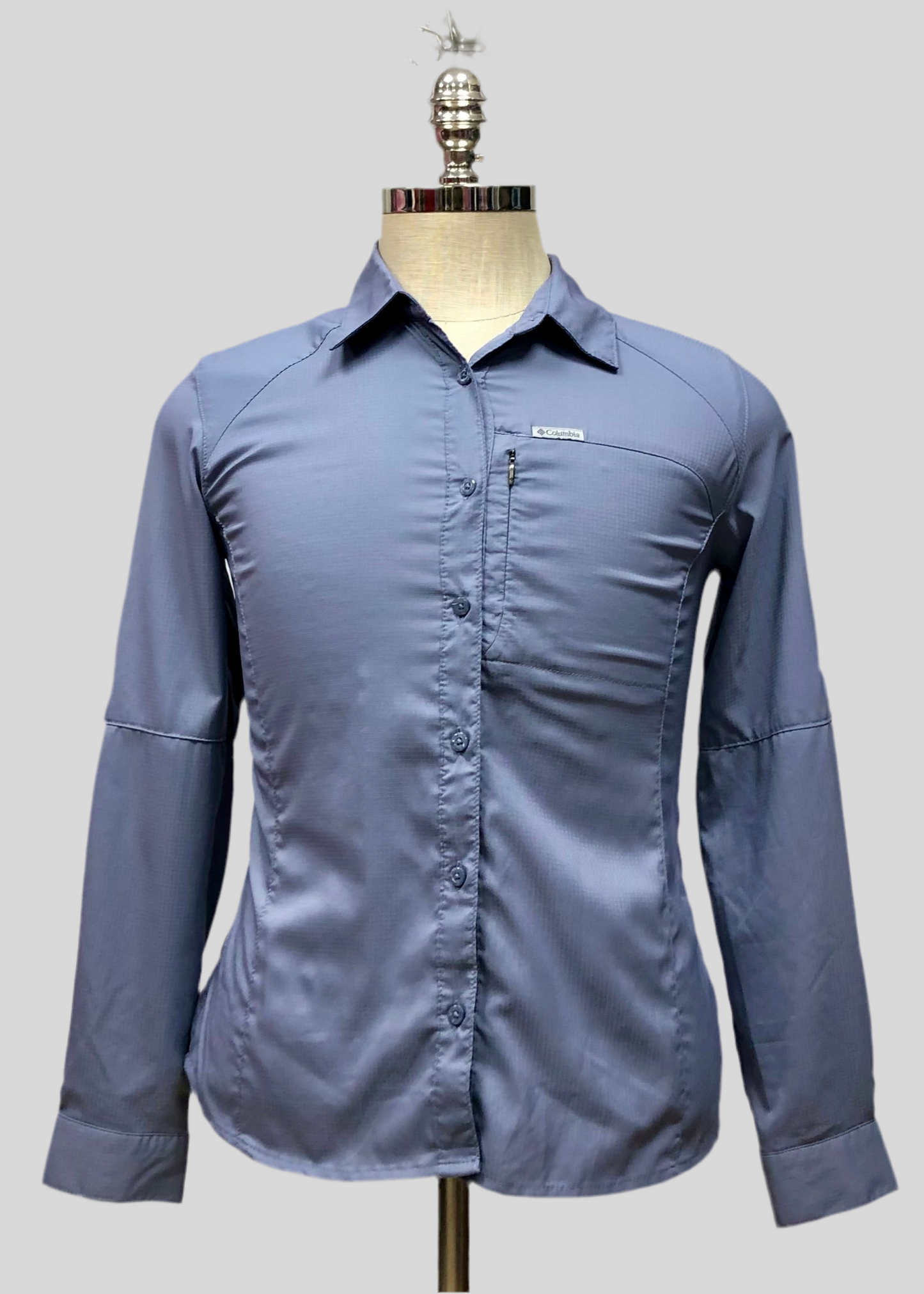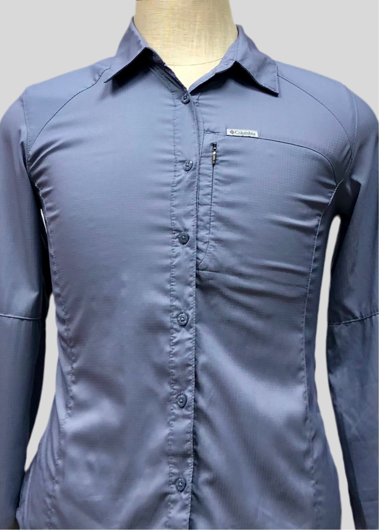 Camisa de mujer Columbia 🔹color gris claro con Omni Shade Manga larga Talla S