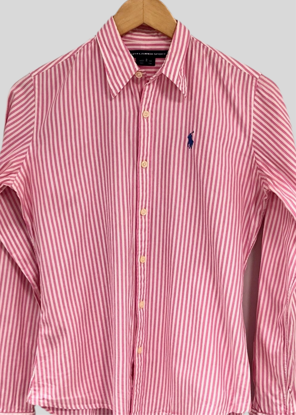 Camisa de mujer Polo Ralph Lauren 🏇🏼 con patrón de rayas en rosado y blanco Talla XS (2) Entalle Regular