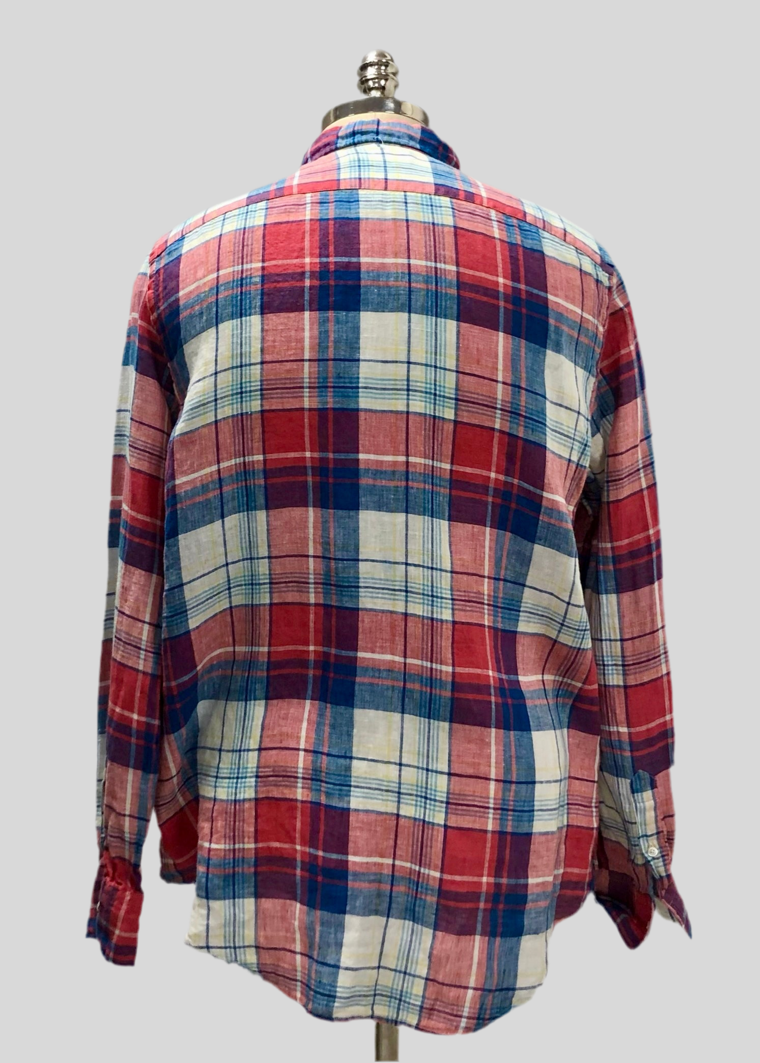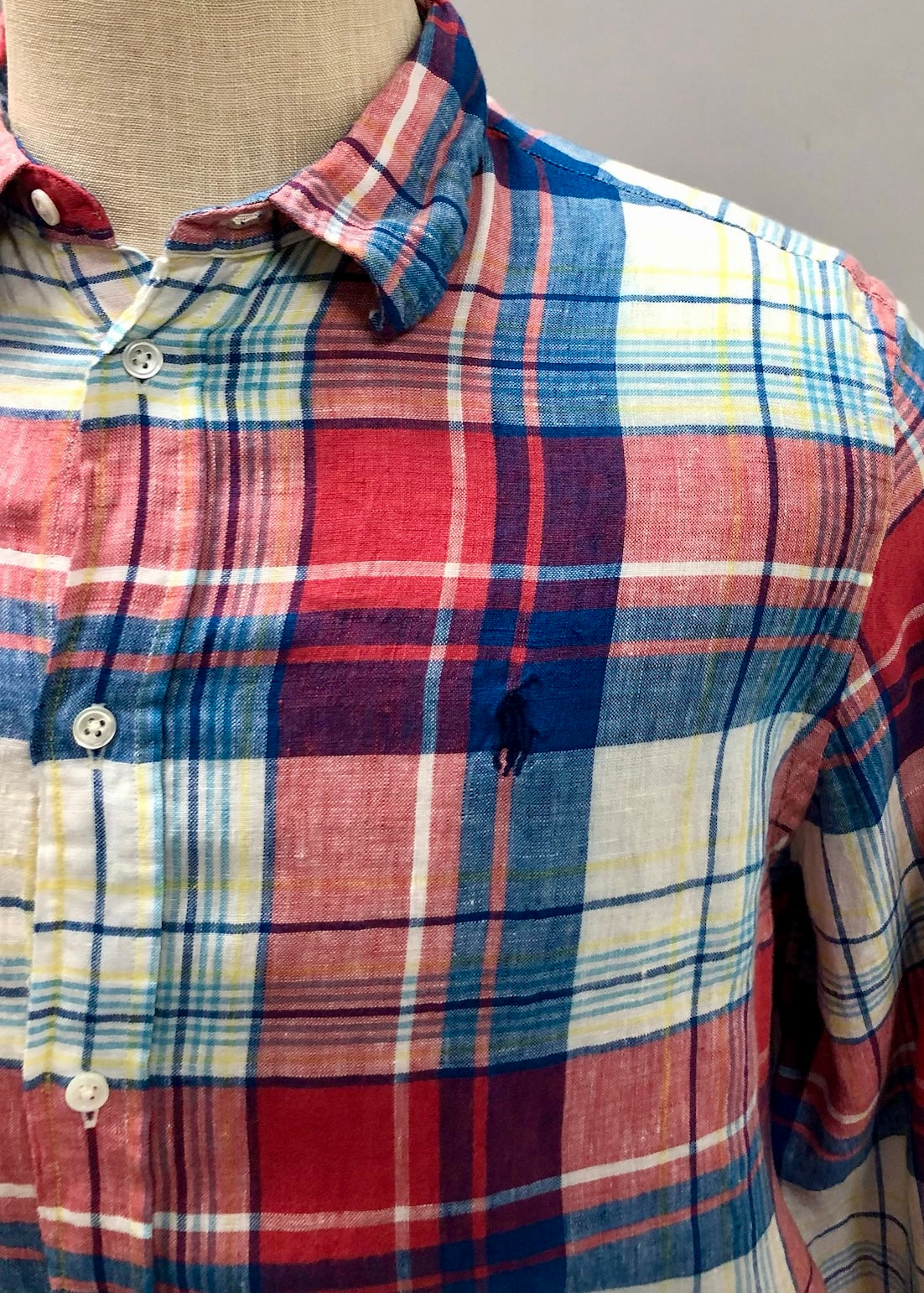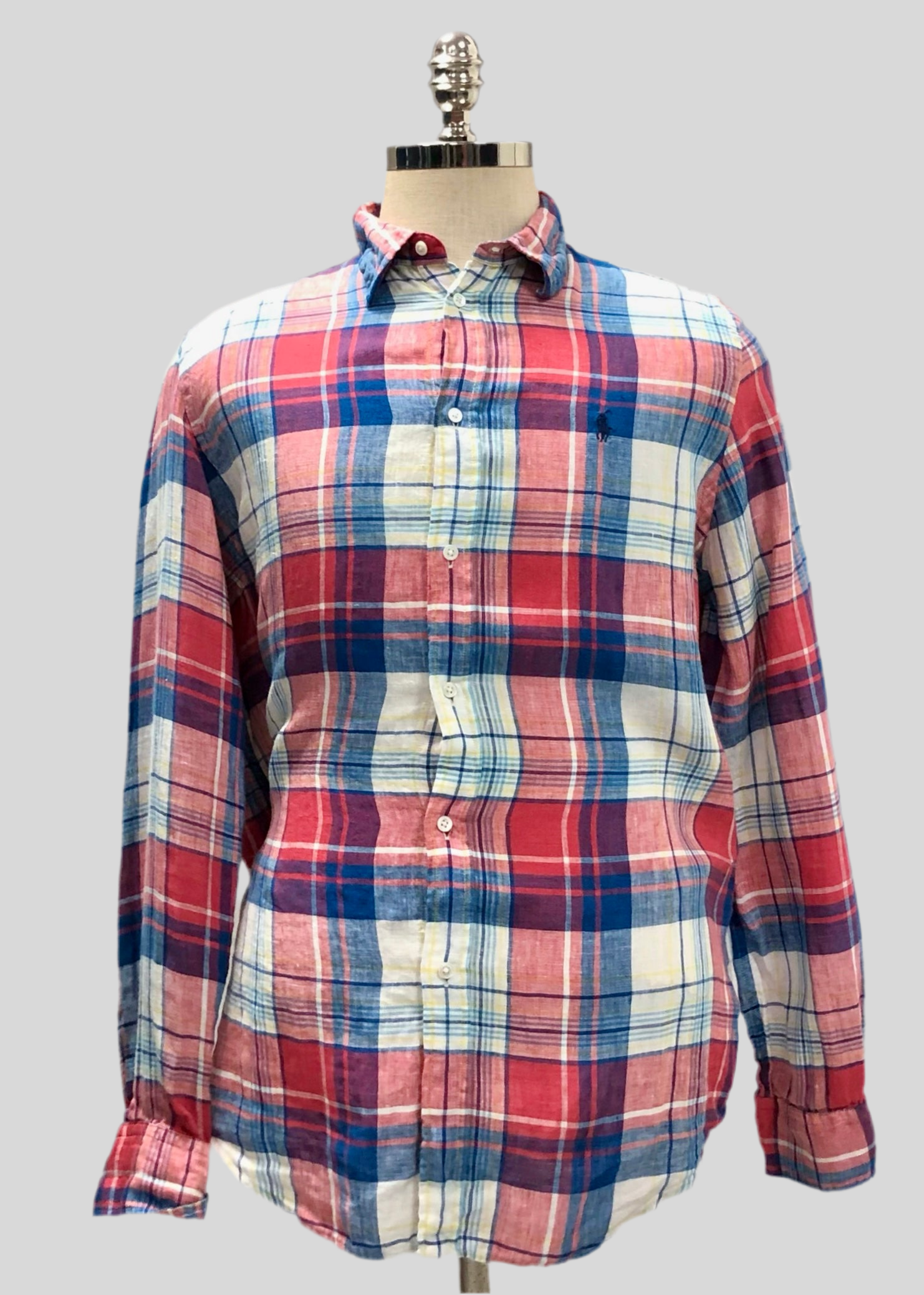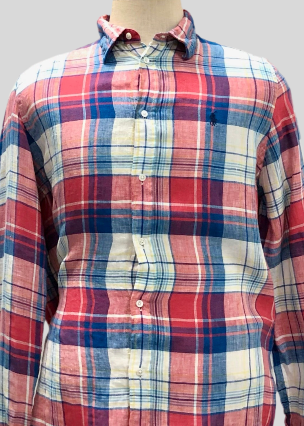 Camisa de botones Polo Ralph Lauren 🏇🏼 - Talla Large - Entalle Regular - Manga larga - Patrón de cuadros en color rojo, azul y blanco con logo bordado en color azul navy - Tela 100% Lino - Cuello en punta abotonada - Como nuevo 10/10 - Precio $45 💵 DM 📩 Por si tiene alguna consulta